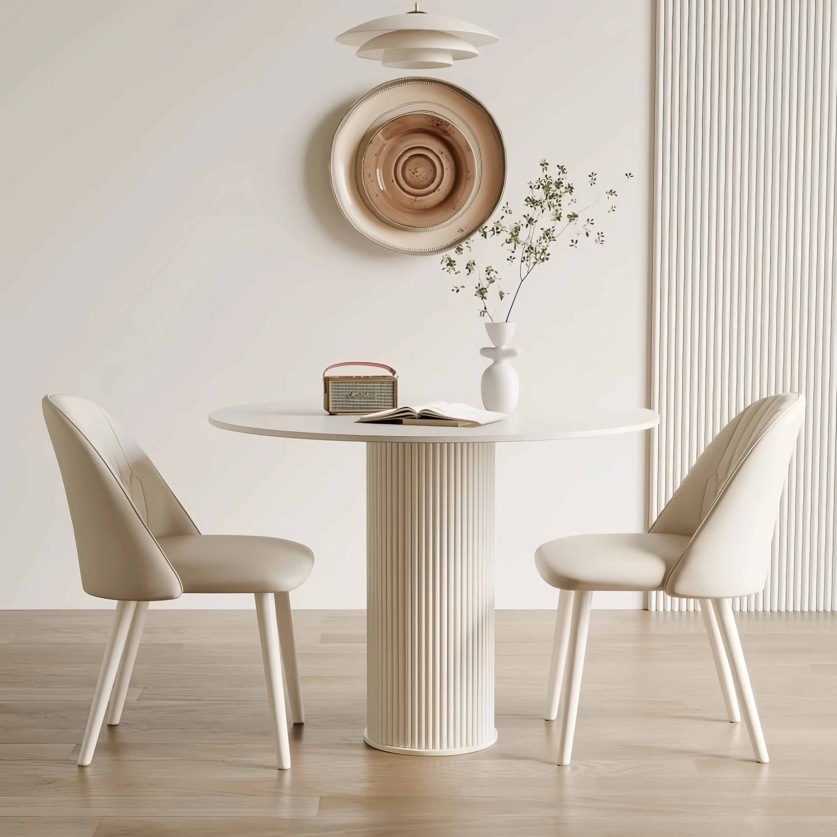 Cream-Colored Round Dining Table for Home Use in Small Apartments, Slate Board Meeting Table and Chair Set, Modern Simple Roman Column Round Table