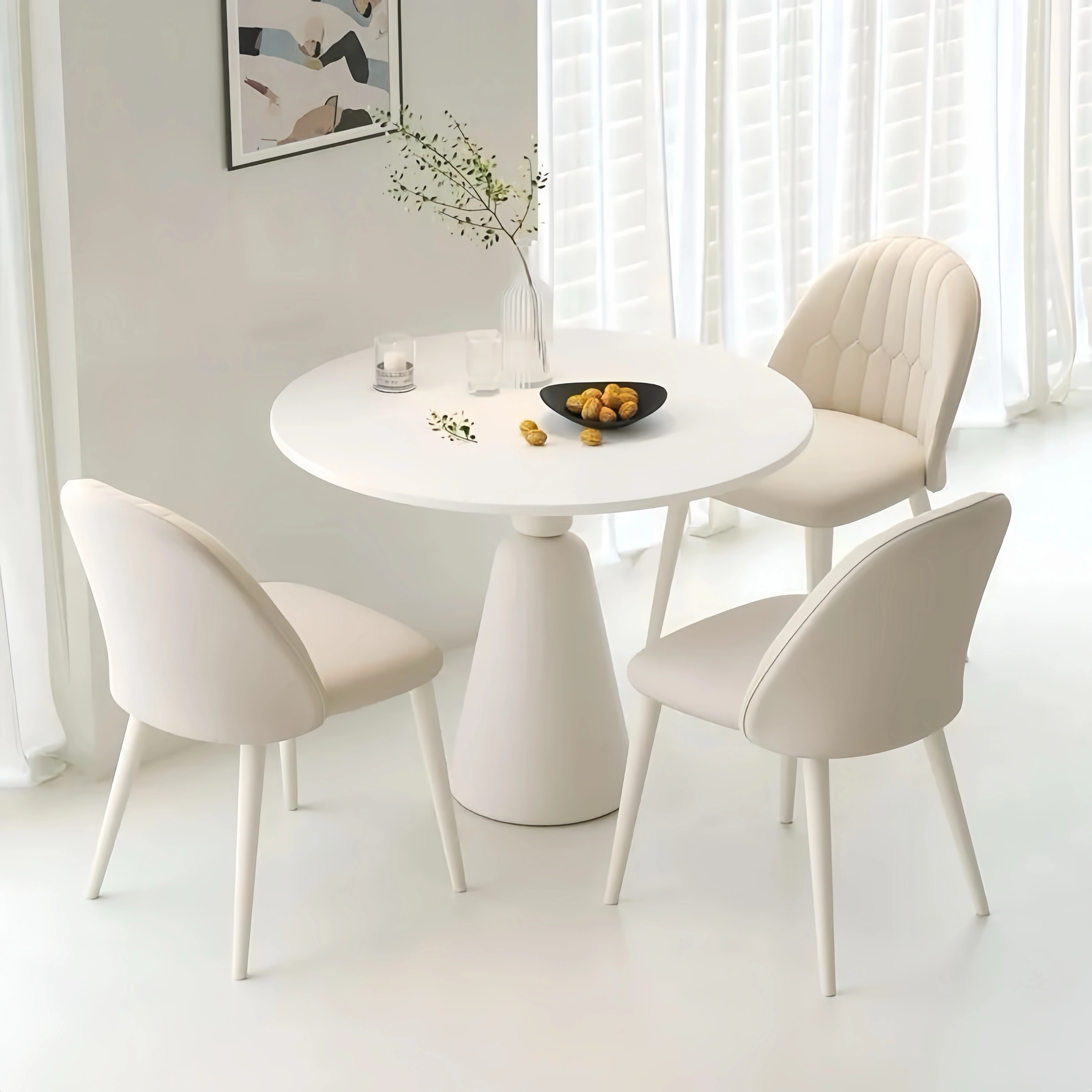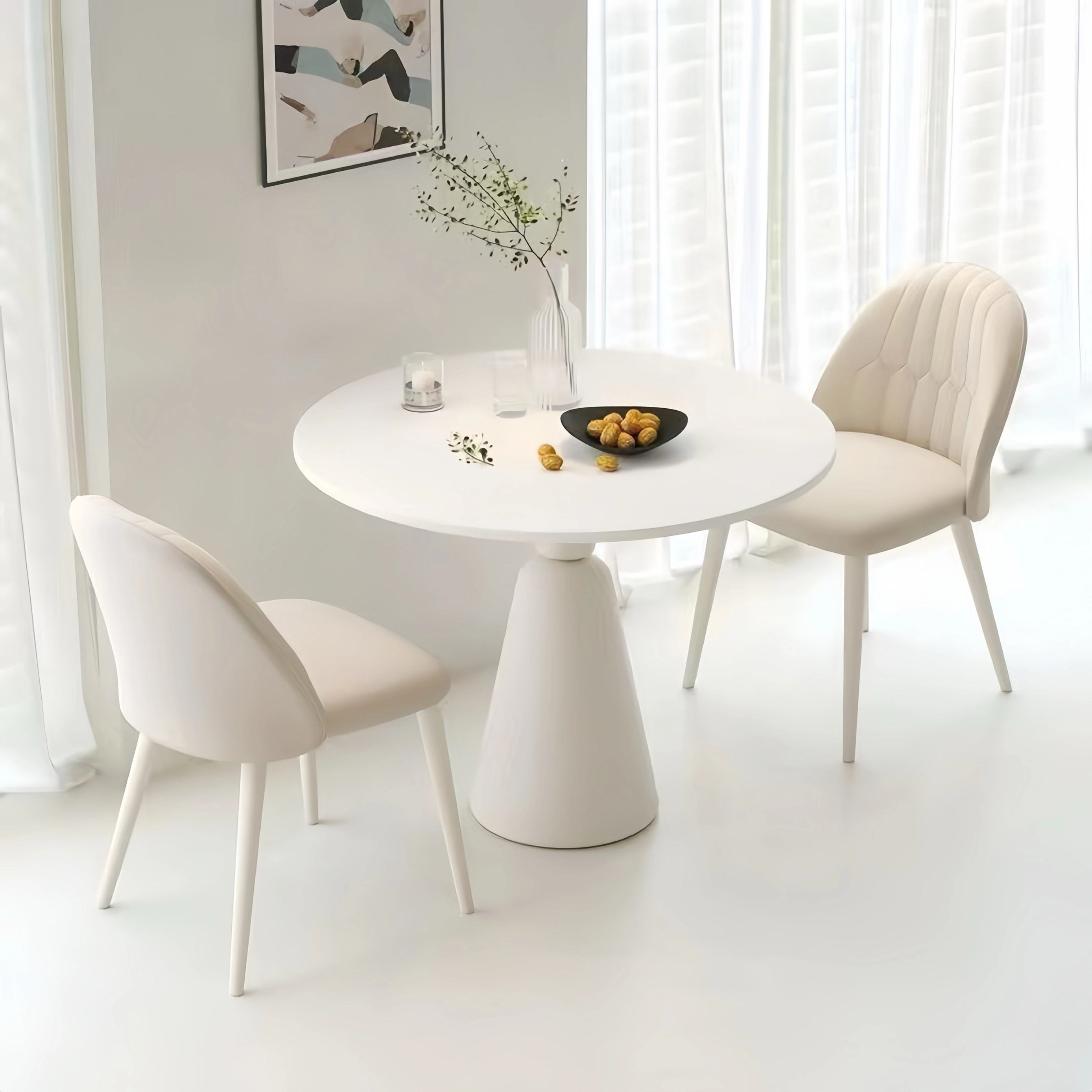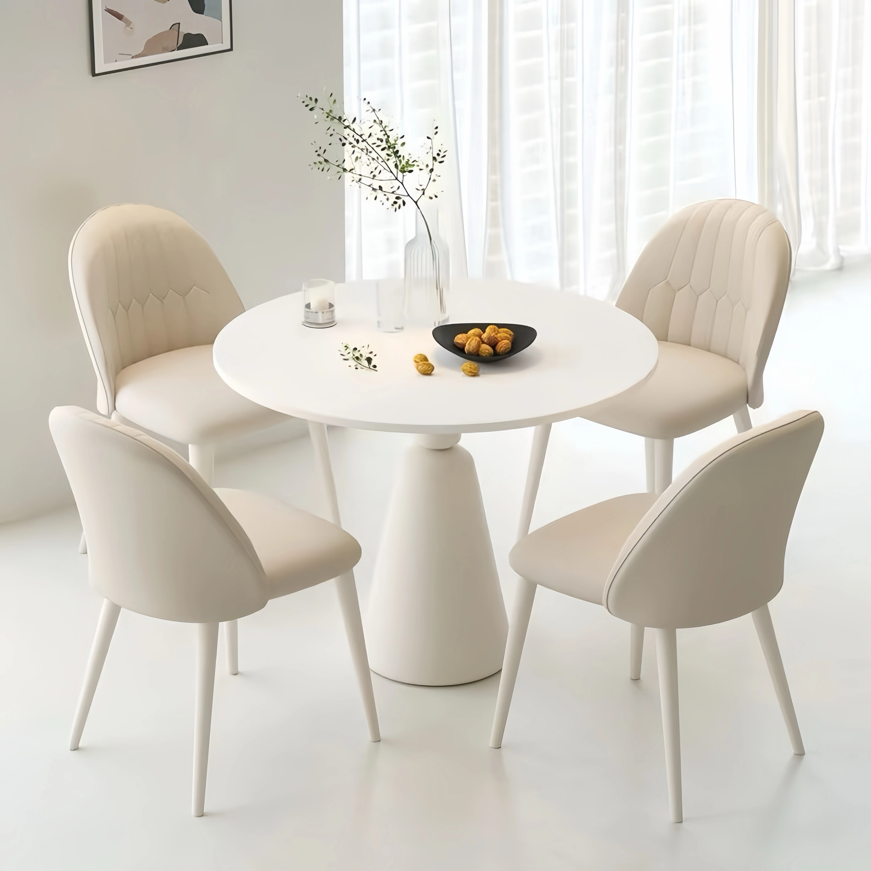Modern Rock Board Dining Table and Chair Combination Milk Tea Shop Balcony Casual Small Round Table Cream Wind White Reception Negotiation Table