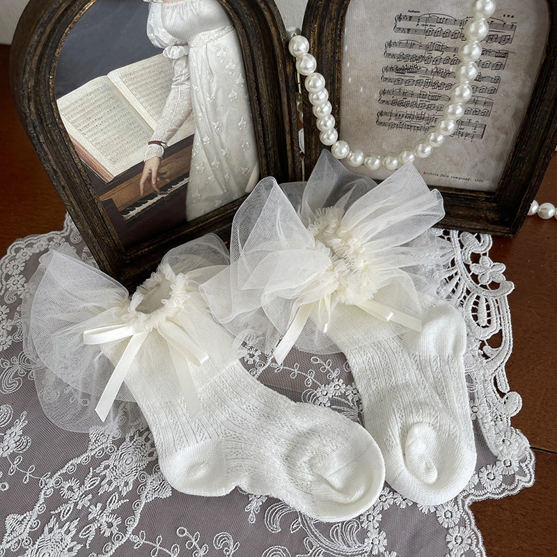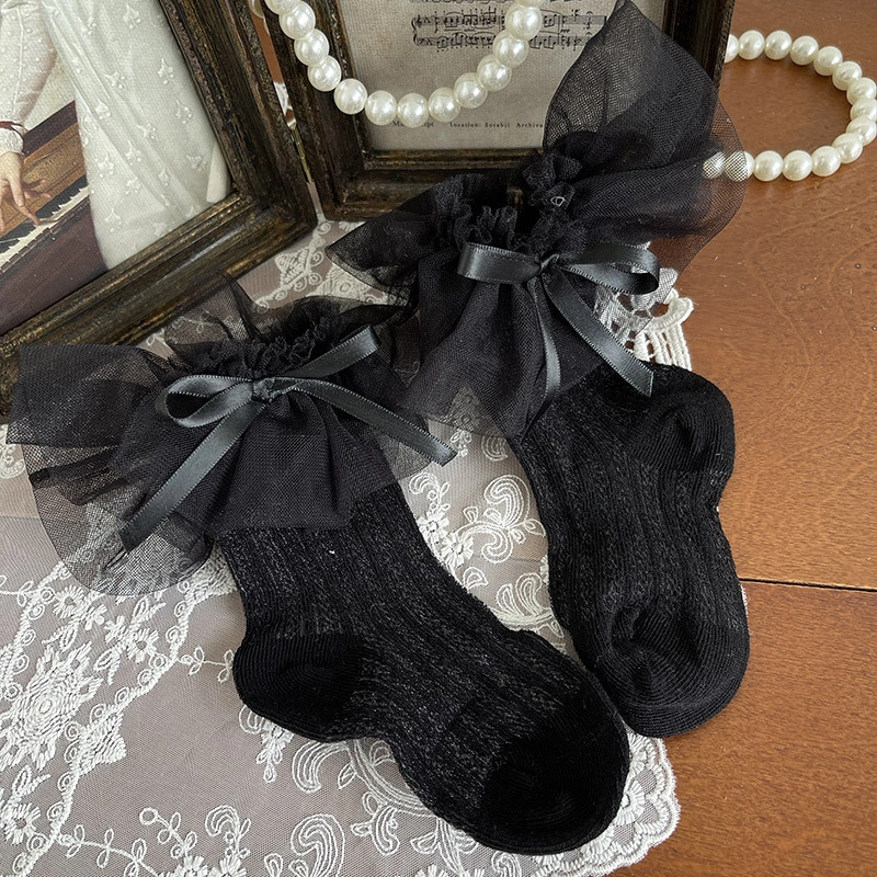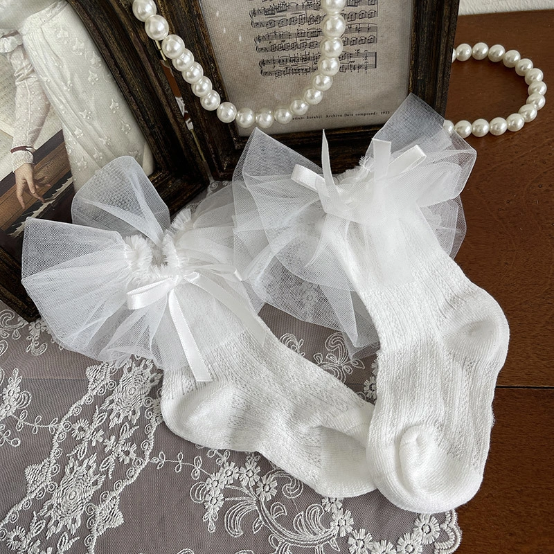 Korean Spring and Summer Baby Girl Kidsren's Thin Fruit Yarn Bow Princess Kidsren's Socks Pure Color Socks