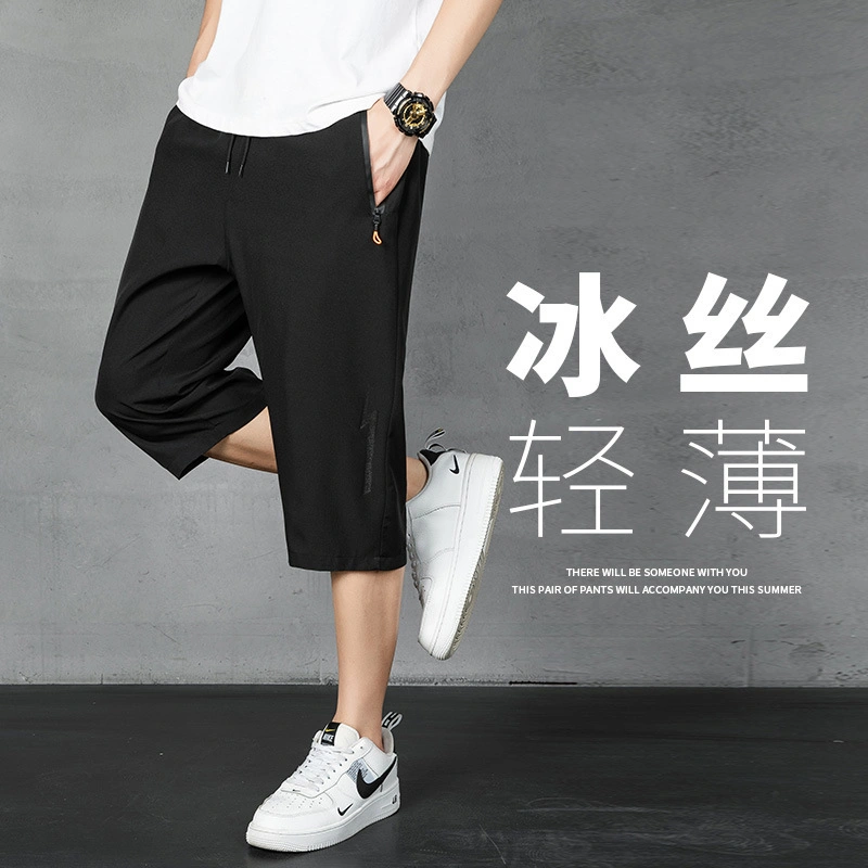 Ice Silk Pants Men's 2025 Summer Thin Ice Silk Quick-Drying Trendyy Brand Cropped Pants Flap Pocket Pants Zipper Casual Pants Men's Pants