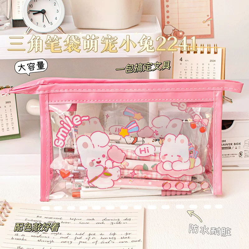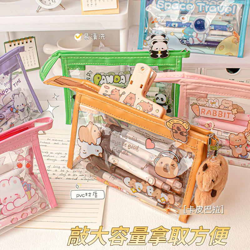 Cartoon Transparent Pencil Case for Boys and Girls, High-Looking Stationery Bag for Primary School Students, Children's Holiday Gifts, Whole Class Prizes Wholesale