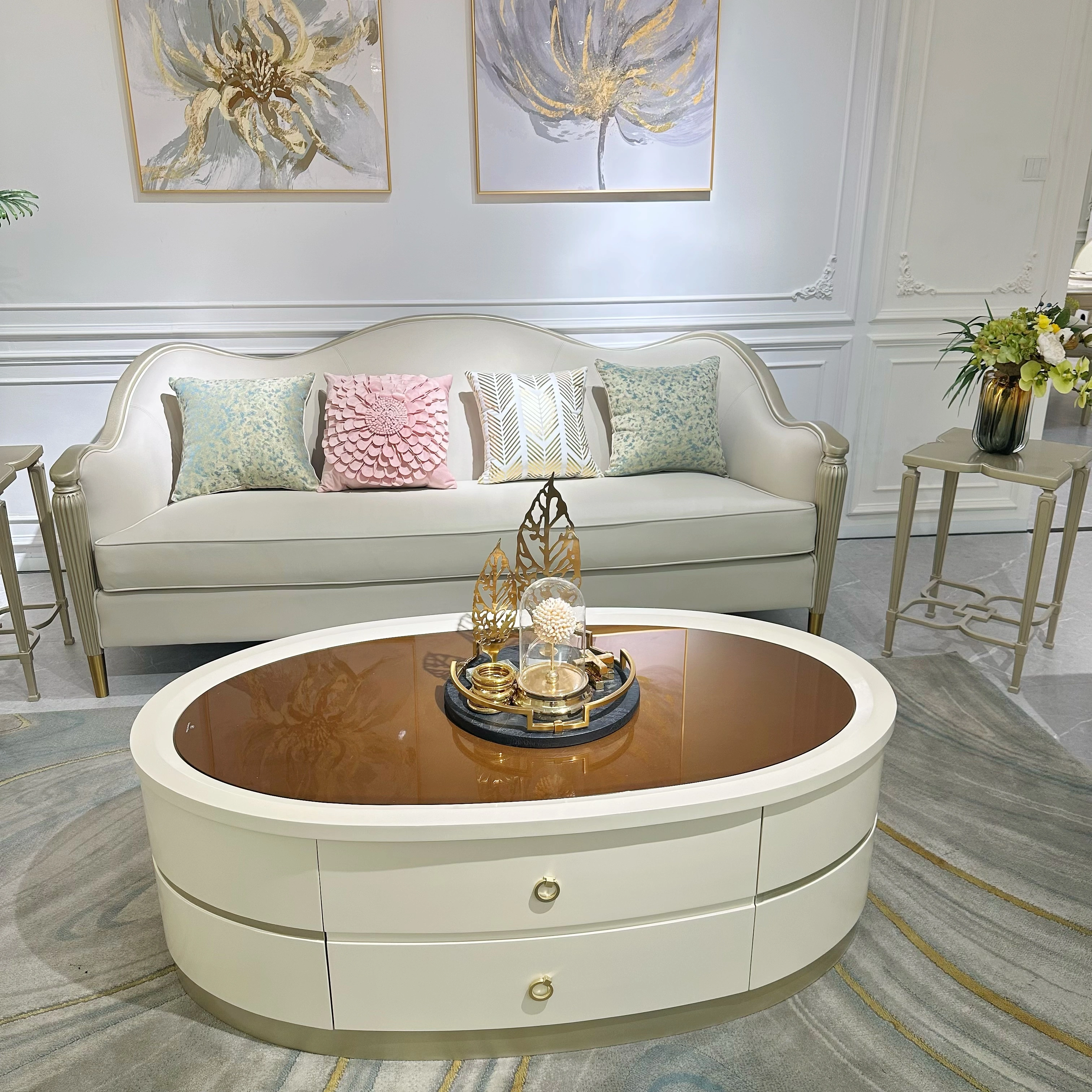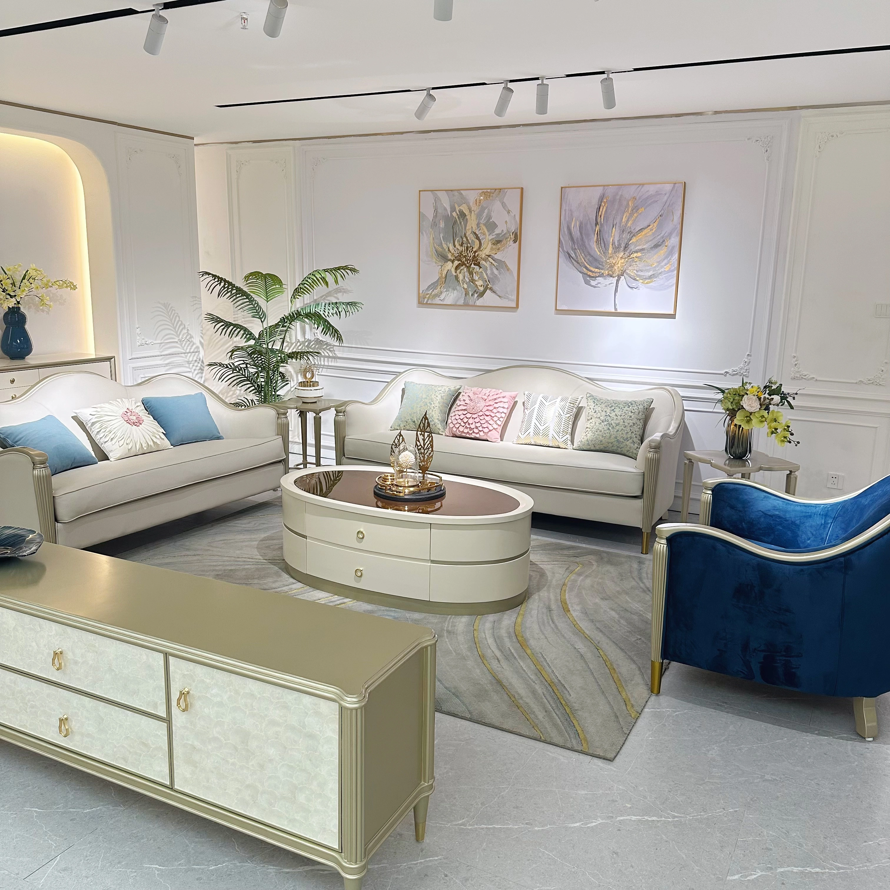 American-Style Light Luxury Solid Wood Leather Sofa 123 Combination Modern Simple Fabric French Luxury Living Room European High-End