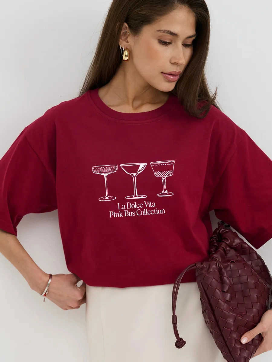 2025 European and American New Fashion Loose Printed Casual Versatile Round Neck T-Shirt Top Loose Printed T-Shirt