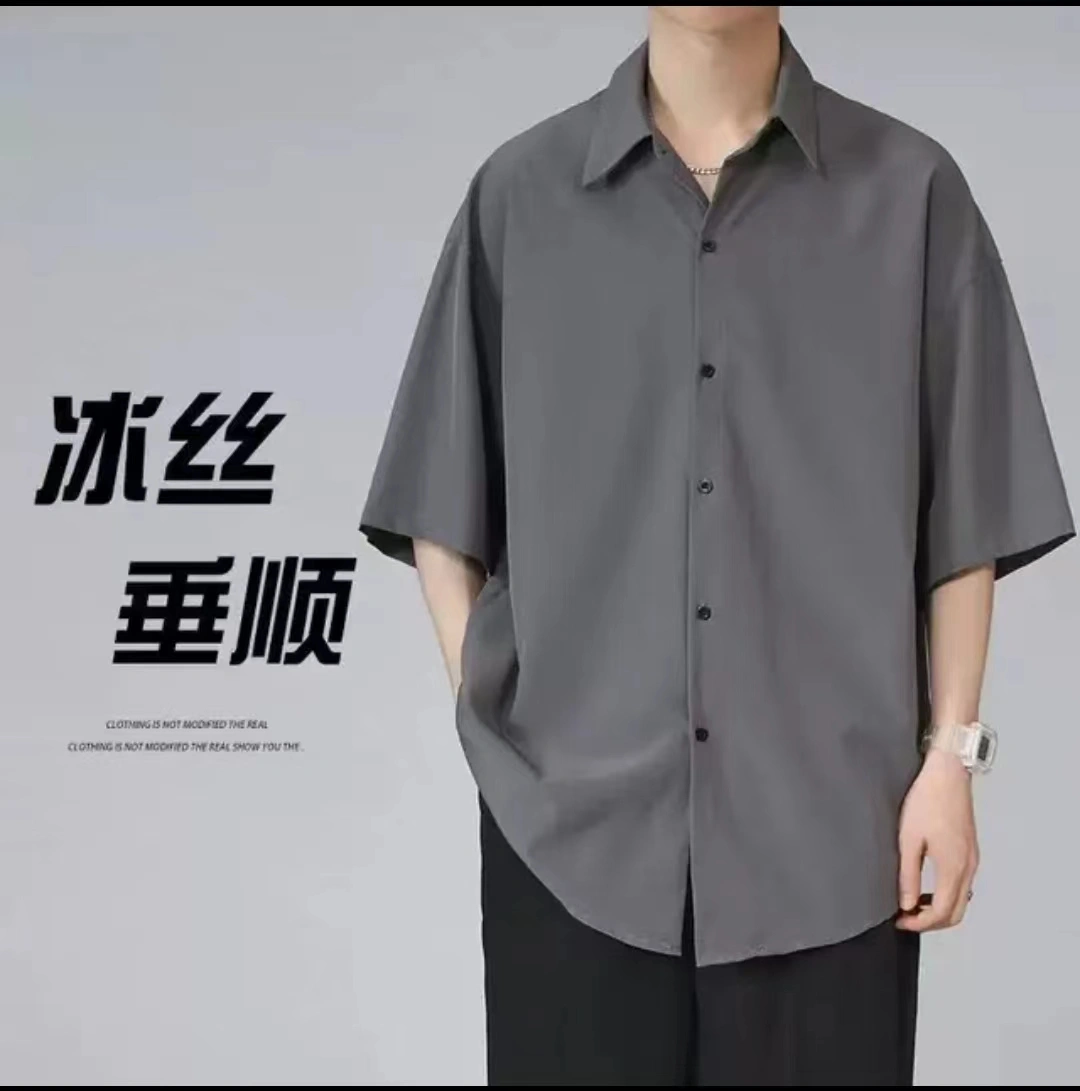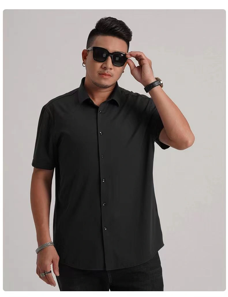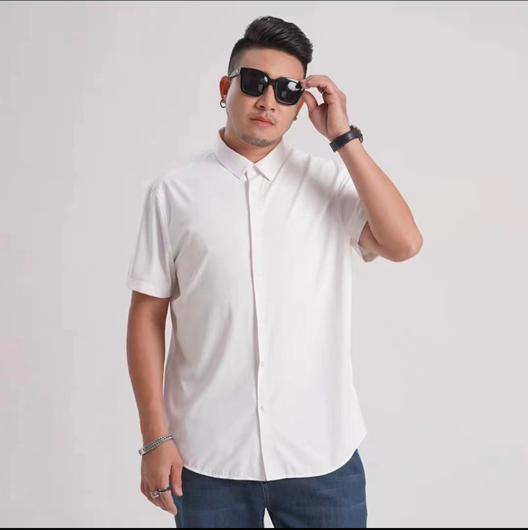 Ice Silk Cool-Feeling Men's Short-Sleeved Shirt, Summer High-End No-Iron Anti-Wrinkle Shirt, Casual Large Size White Clothes