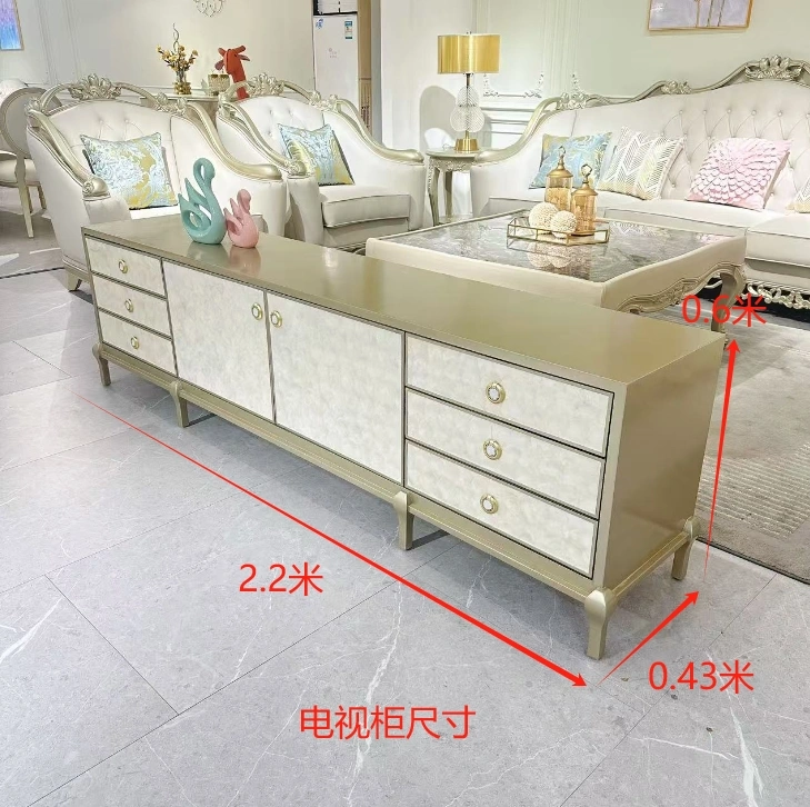 American Style Double Cabinet Door Six Drawers Shell TV Cabinet Sideboard Accessible Luxury Floor Cabinet Living Room Minimalist Storage Decorative Cabinet