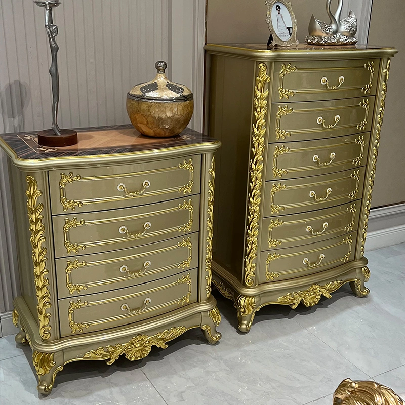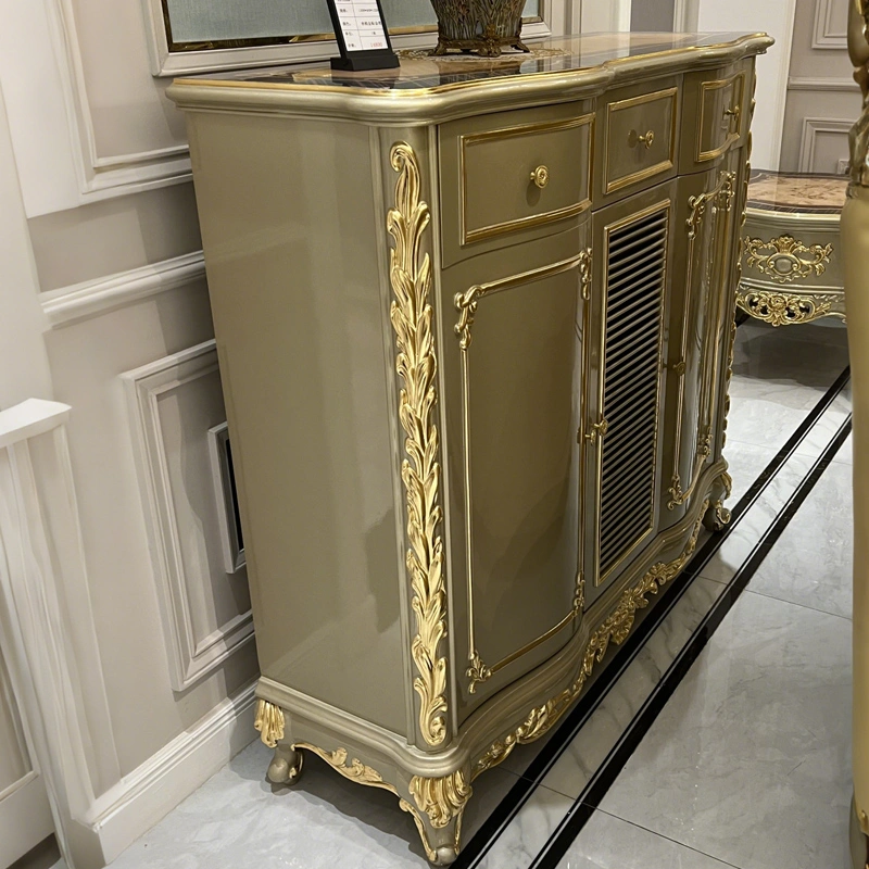 European Style 1.6 m Parquet Noodle Sideboard Solid Wood Carved Champagne Gold Sticking Gold Foil Storage Tea Cabinet Entrance Cabinet