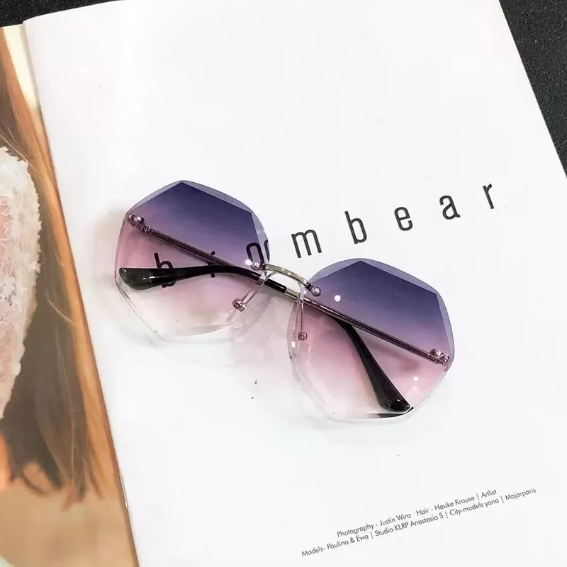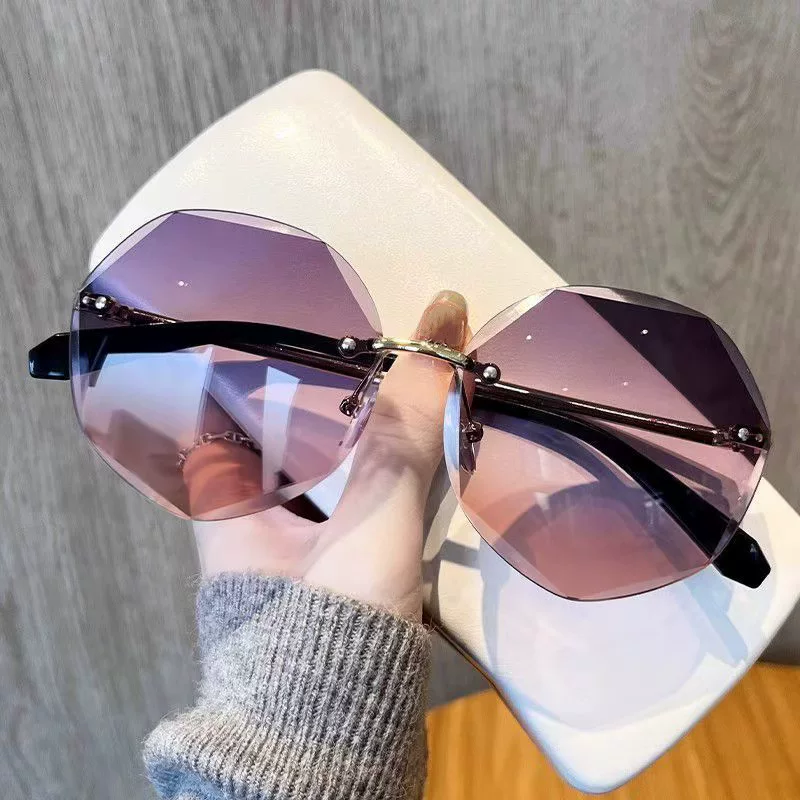New Fashionable Frameless Cut-Edge Sunglasses for Women, Beauty Sunglasses, Anti-Uv, Slimming for Big Faces, Sunshade Glasses for Women