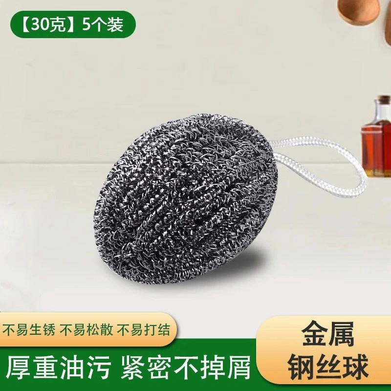 Steel Wool Ball with Built-In Hanging Rope, Stainless Steel Cleaning Ball That Doesn'T Shed or Rust, Household Kitchen Brush for Cleaning Iron Pots and Washing Dishes