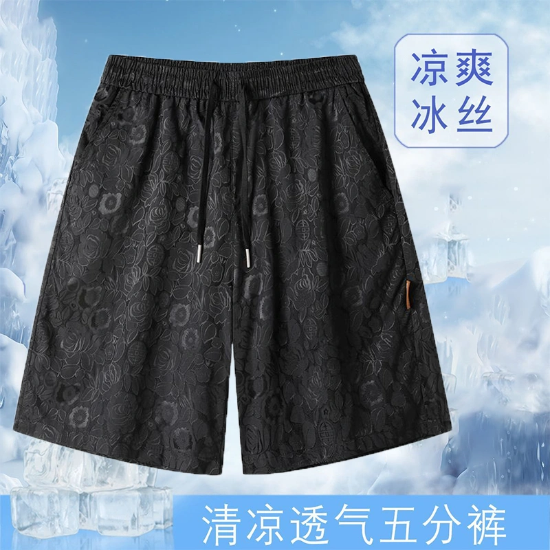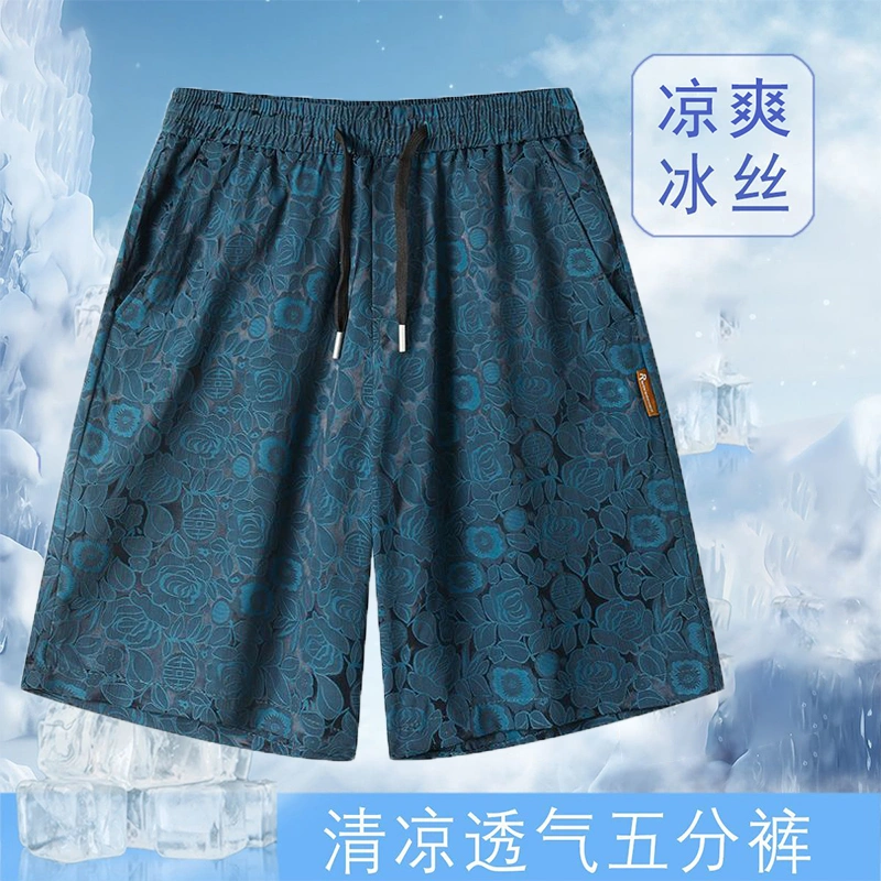 Ice Silk Sports Shorts for Men, Summer Thin Quick-Drying Casual Five-Point Shorts, Men's Loose Air-Conditioned Elastic Beach Shorts