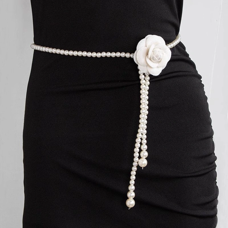 Dress Belt Women's High-End Decoration Summer Skirt Flower White Pearl Waist Girdle Waist Chain Accessories