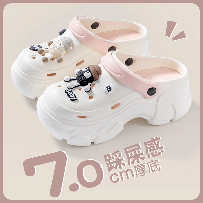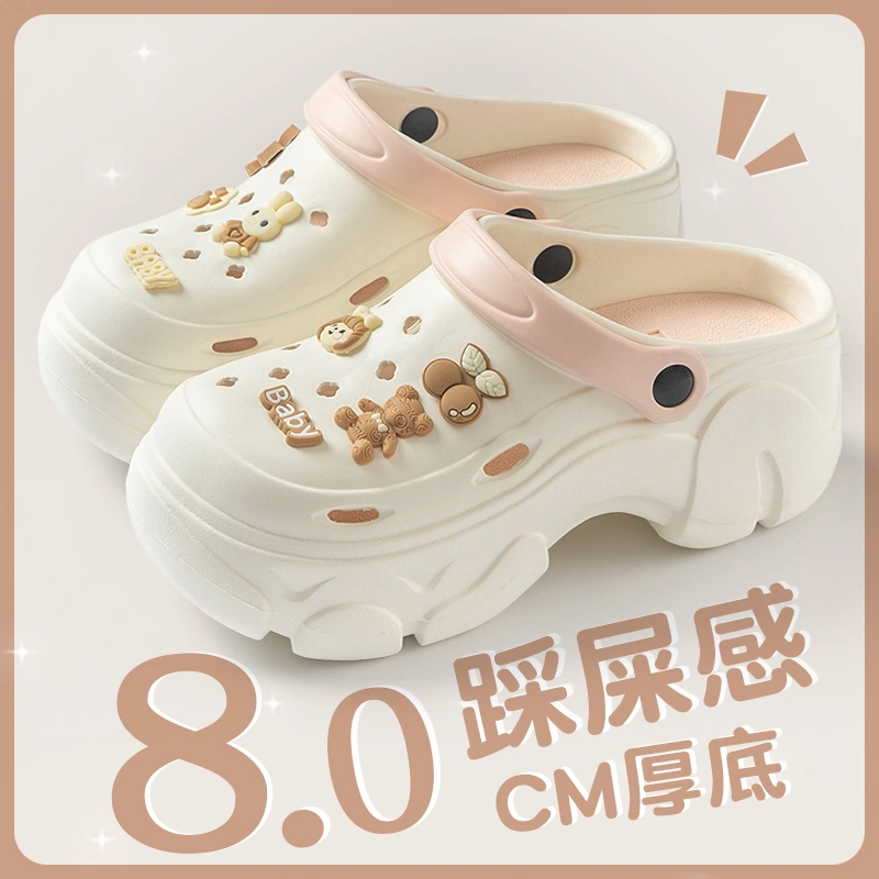 Briquette Croc Shoes Women's Summer 2025 New Platform Thick Sole soft sole Sandals Increased Anti-Slip Baotou Slippers