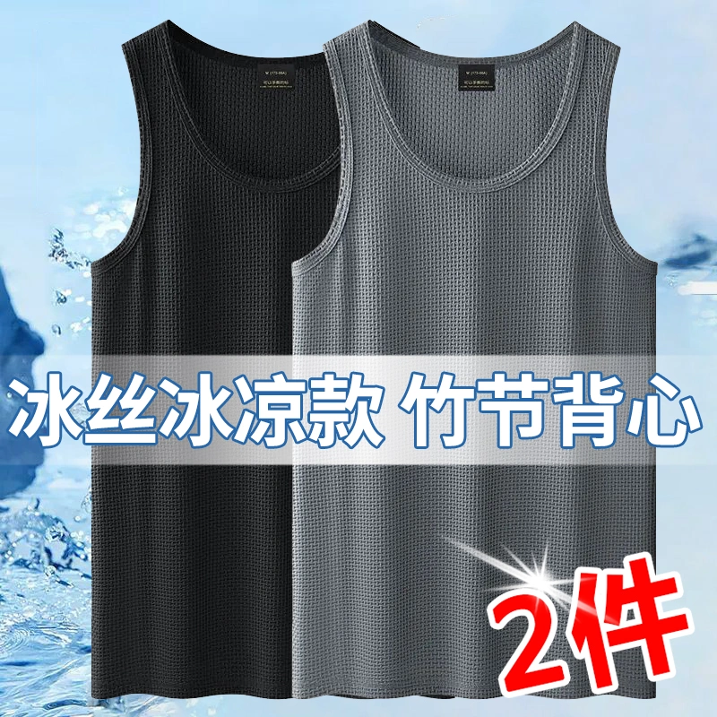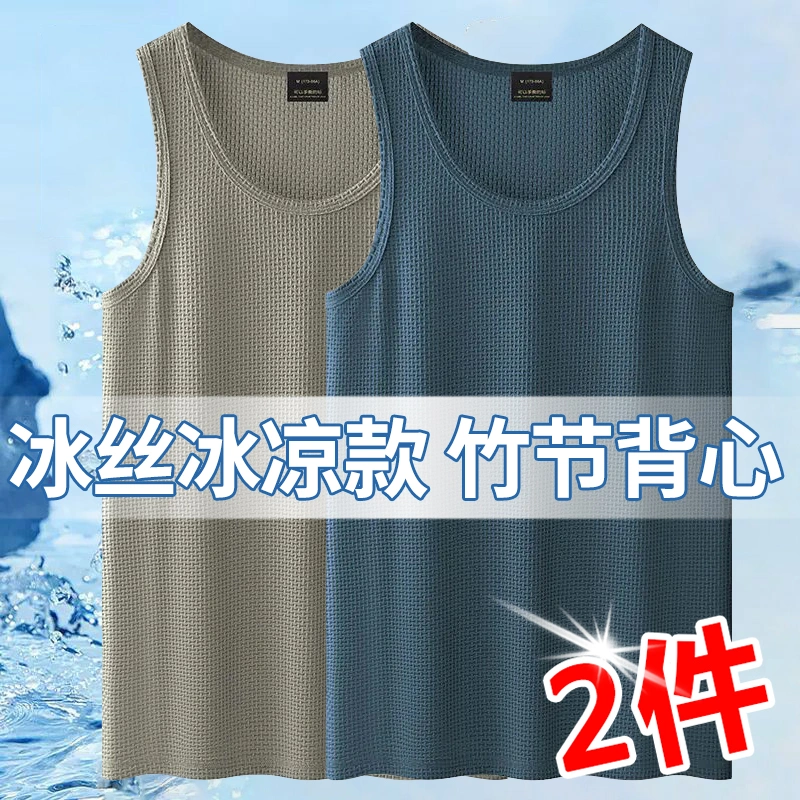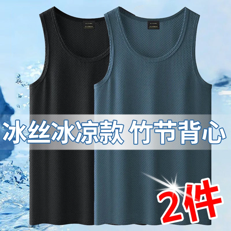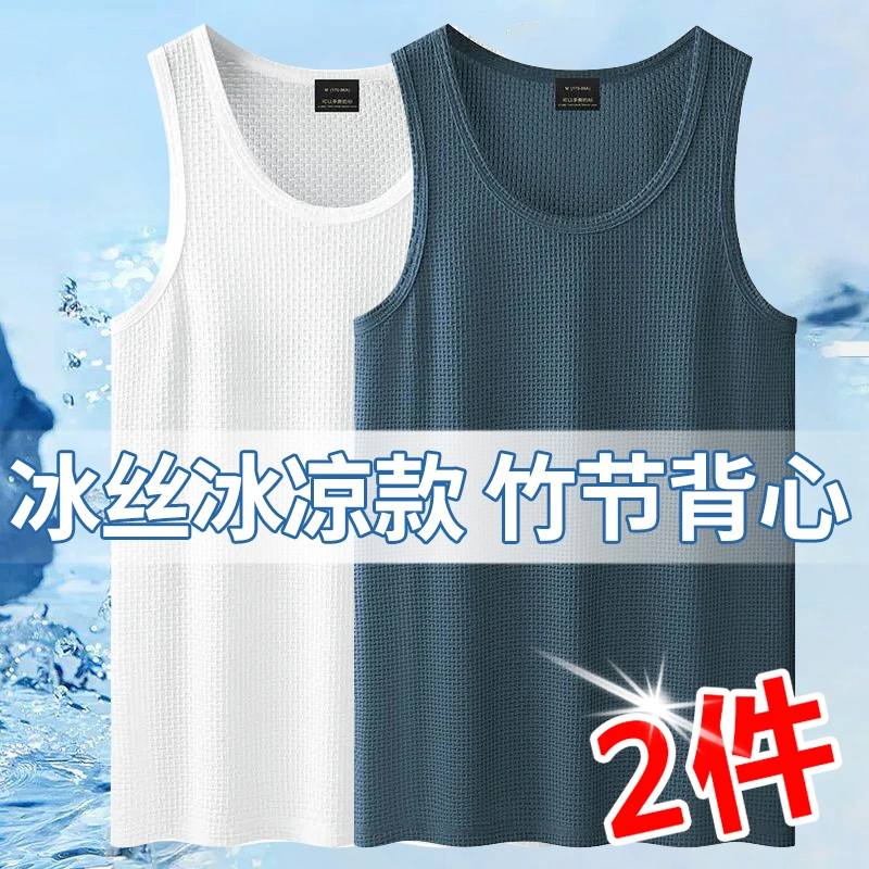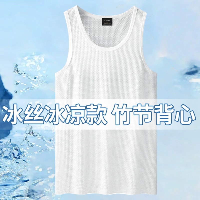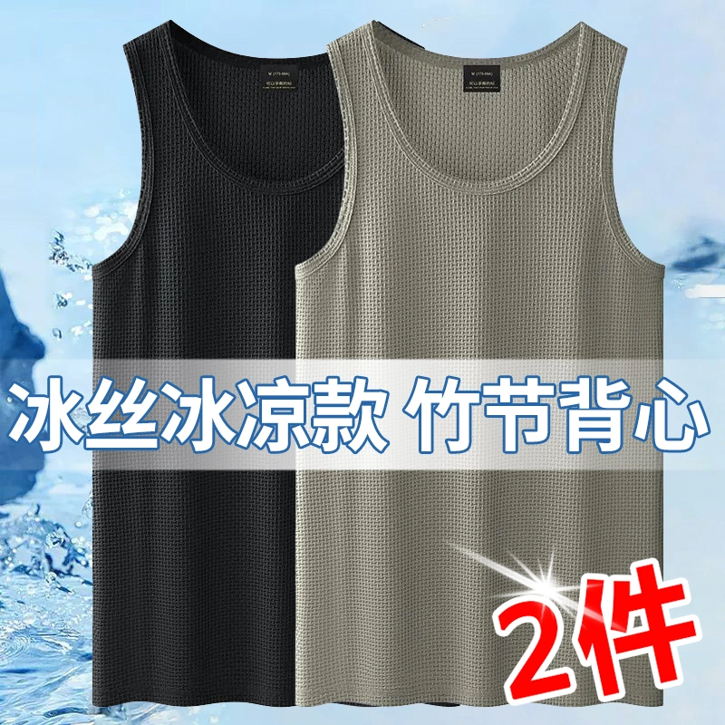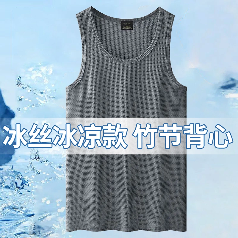 Men's Ice Silk Vest Season New Slim Hurdle Sports Fitness Undershirt Bamboo Cool Sleeveless T-Shirt Round Neck Trendy