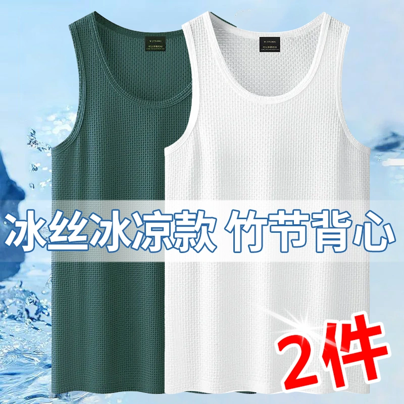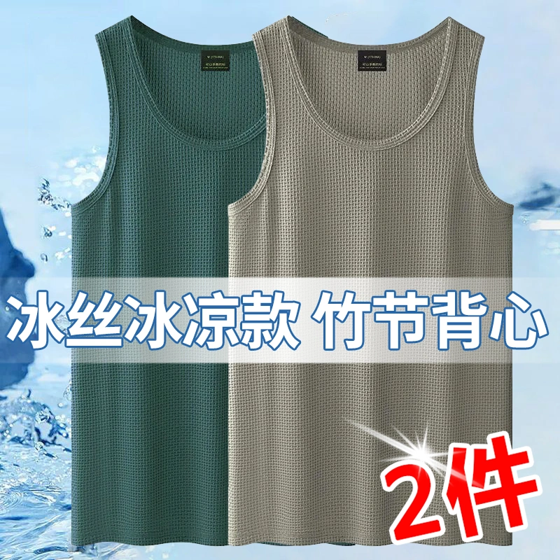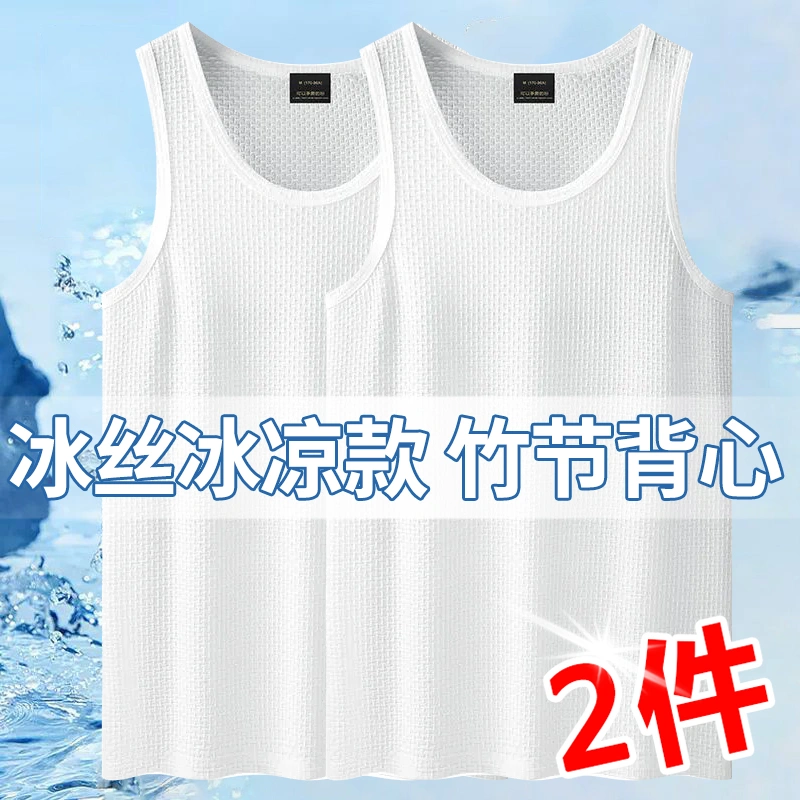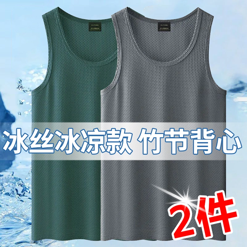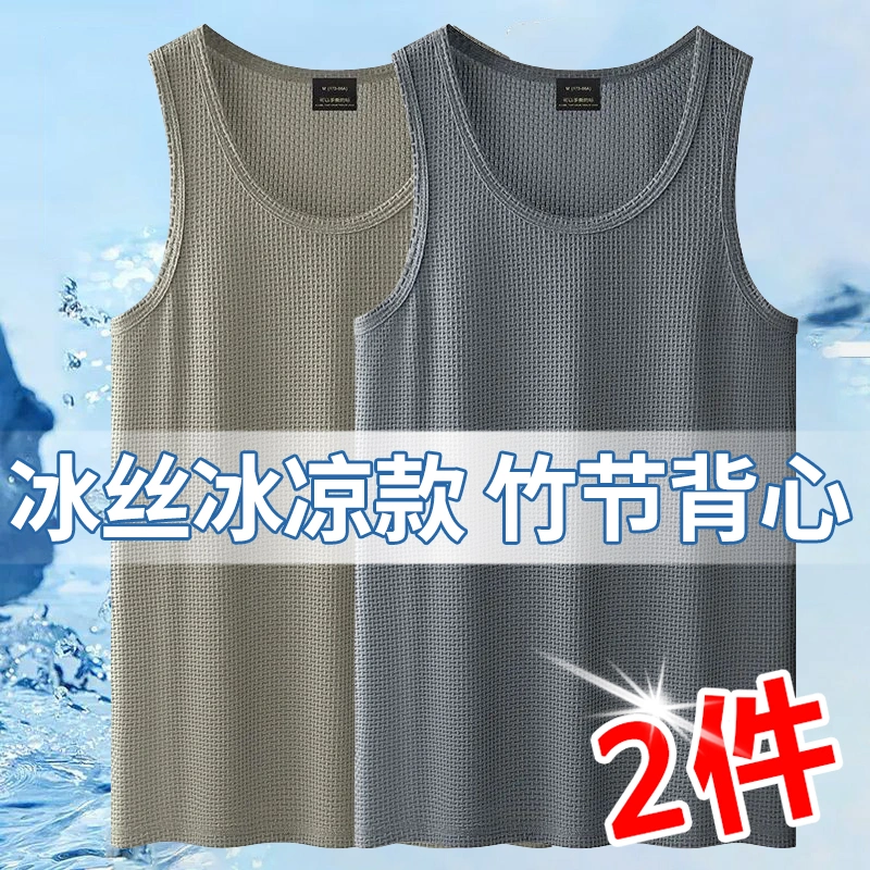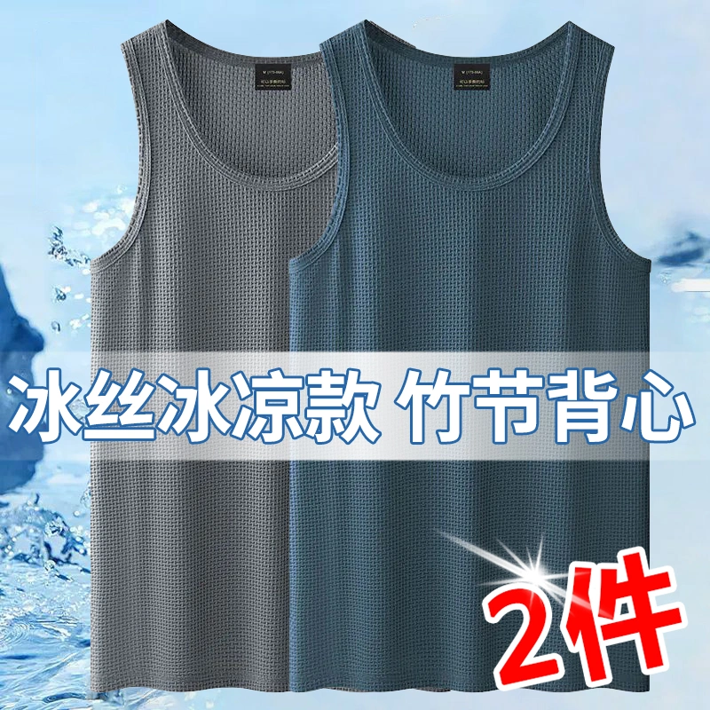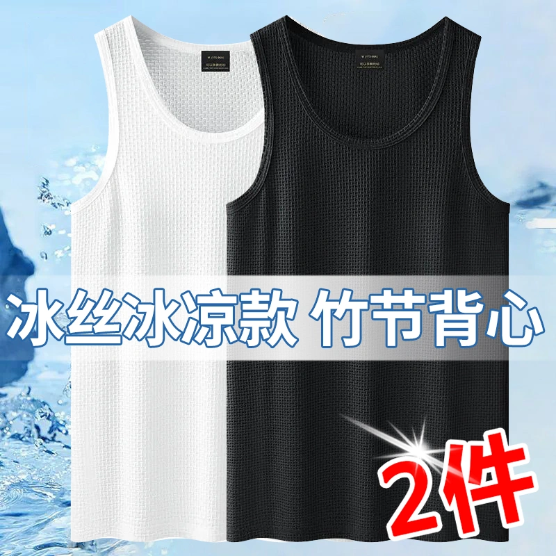 Men's Ice Silk Vest Season New Slim Hurdle Sports Fitness Undershirt Bamboo Cool Sleeveless T-Shirt Round Neck Trendy