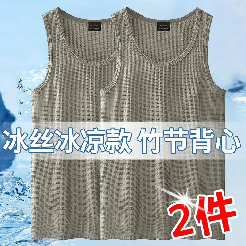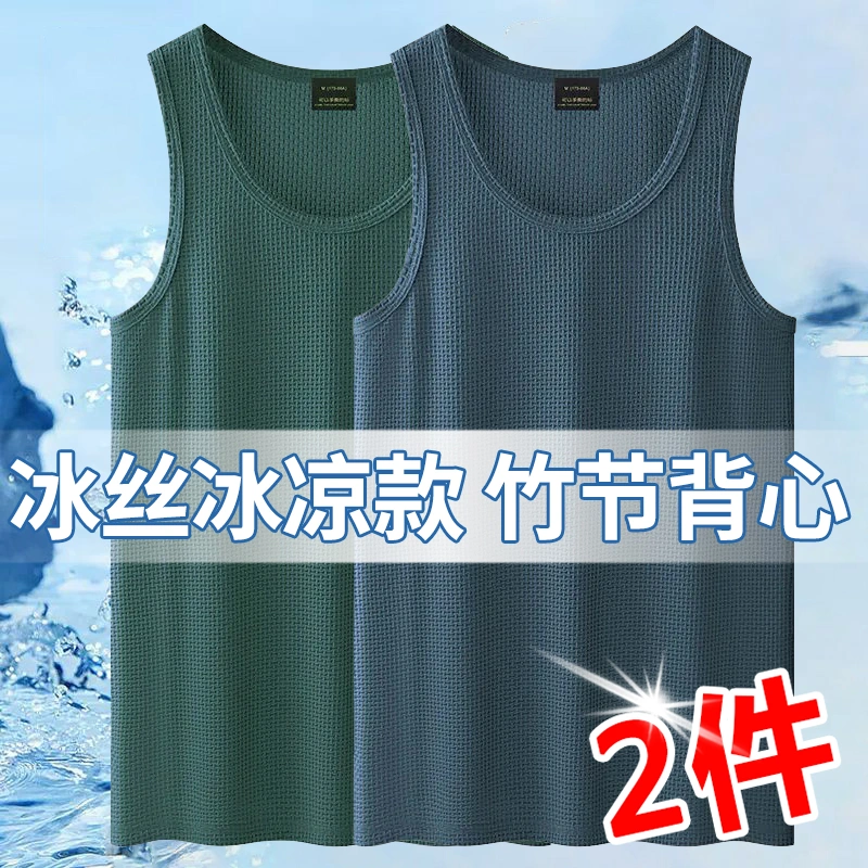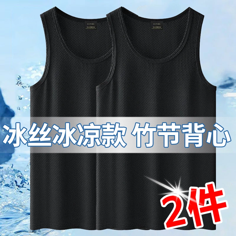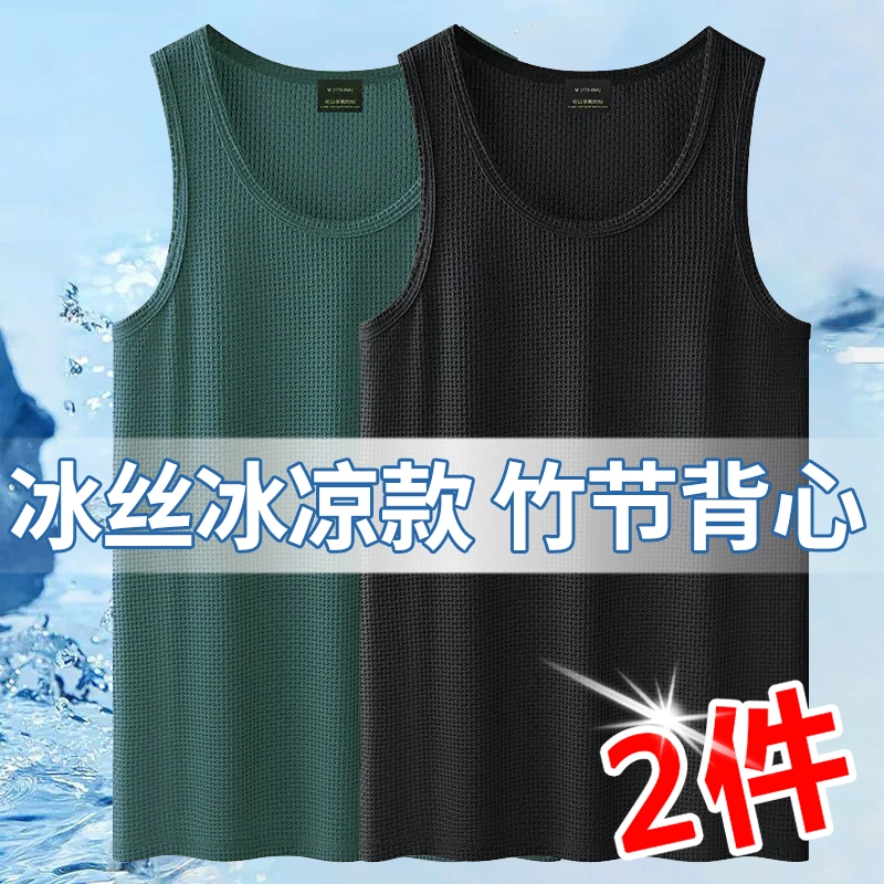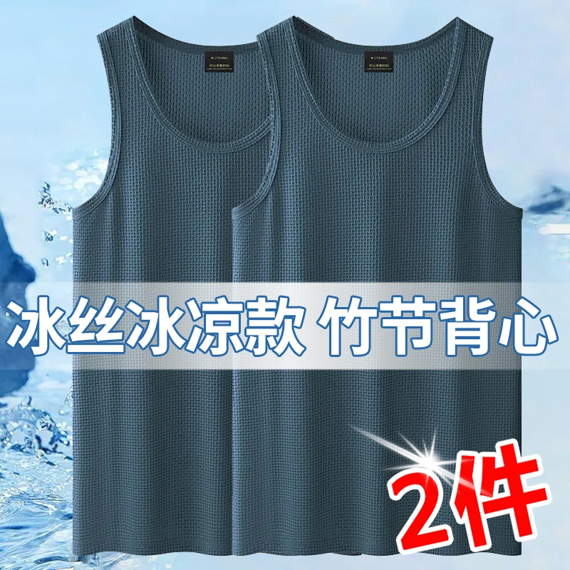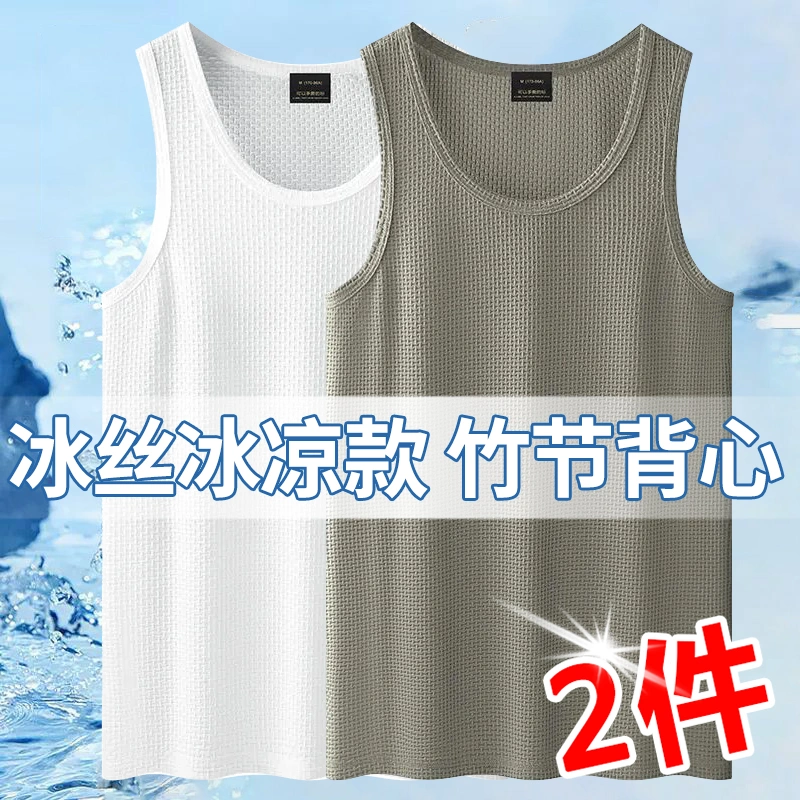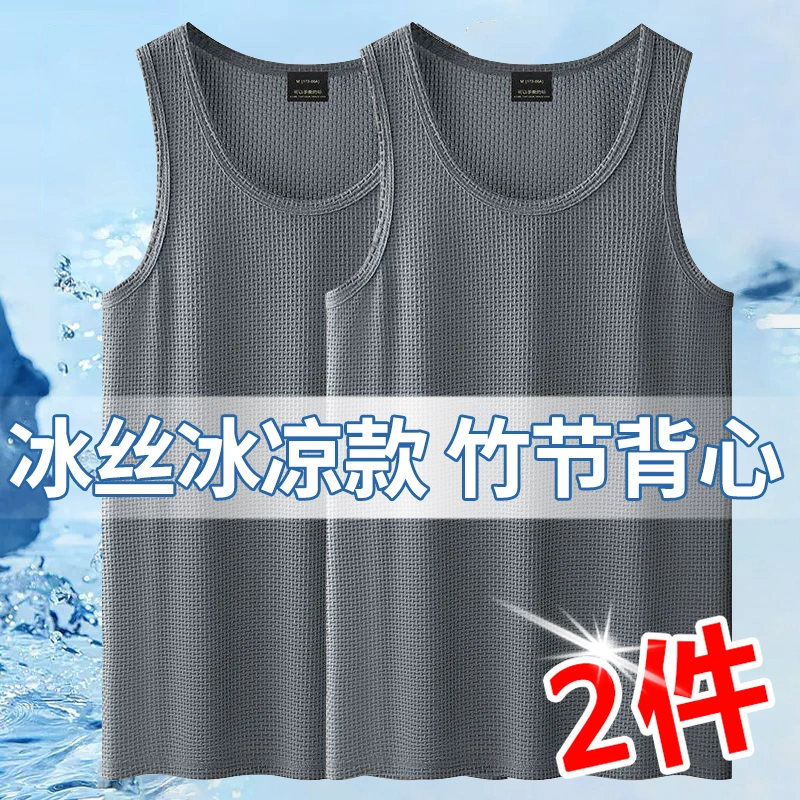 Men's Ice Silk Vest Season New Slim Hurdle Sports Fitness Undershirt Bamboo Cool Sleeveless T-Shirt Round Neck Trendy