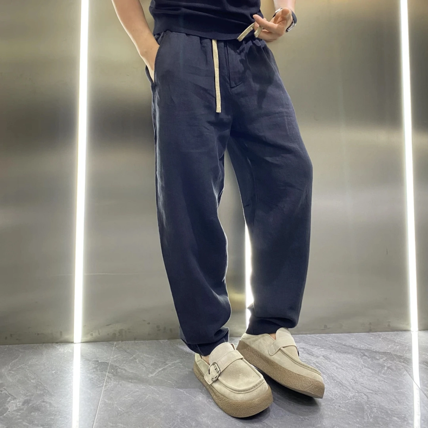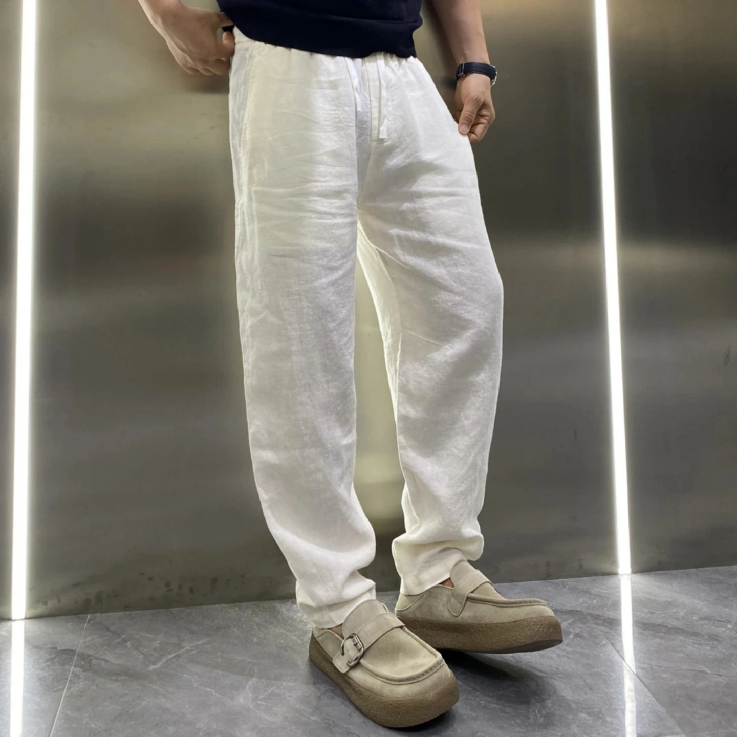 Summer Thin Casual Pants for Men, High-Quality Light Luxury Scimitar Pants, Solid Color, Simple, Breathable, Cool, Stylish Straight-Leg Pants