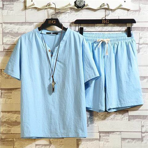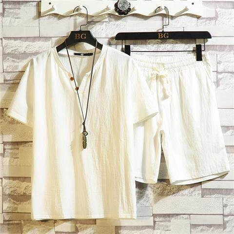 Cotton and Linen Short-Sleeved Shorts Suit for Men, Chinese Style, Summer Trend, Middle-Aged and Elderly Dad, Linen Casual Sports Two-Piece Set
