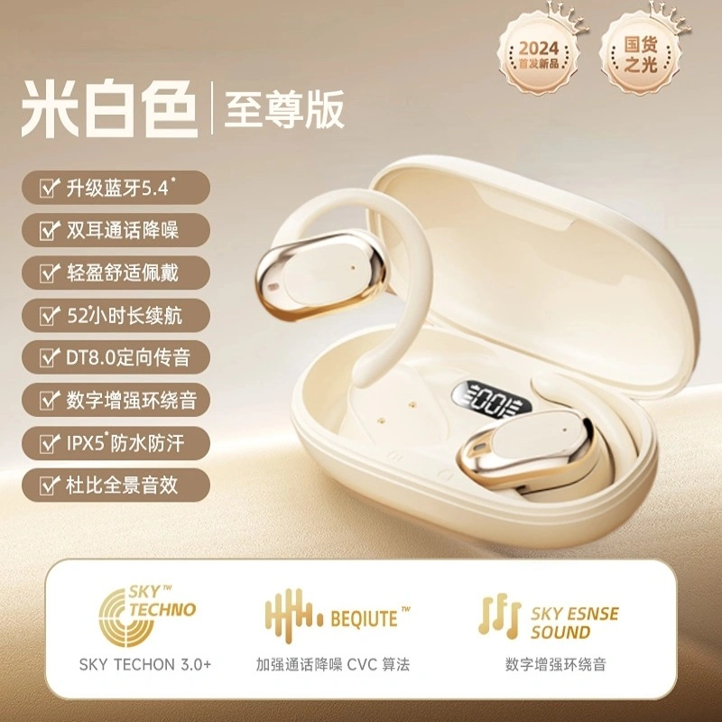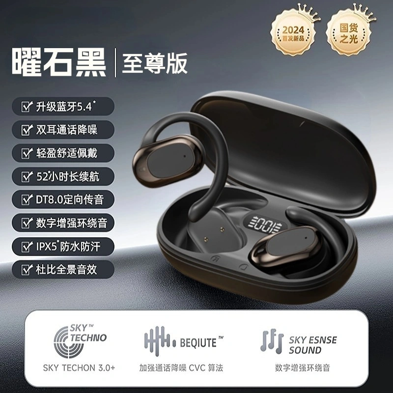 Ear-Hook Sports Wireless Bluetooth Headphones 2025 New Model Bone Conduction Non-In-Ear Noise Reduction Long Battery Life