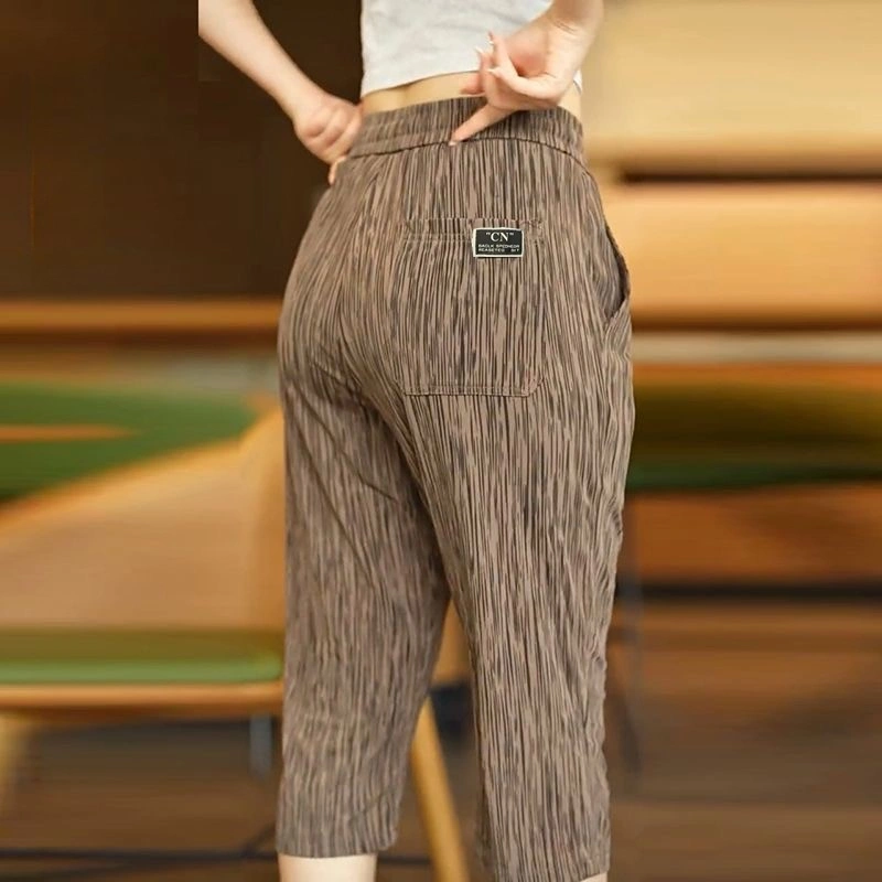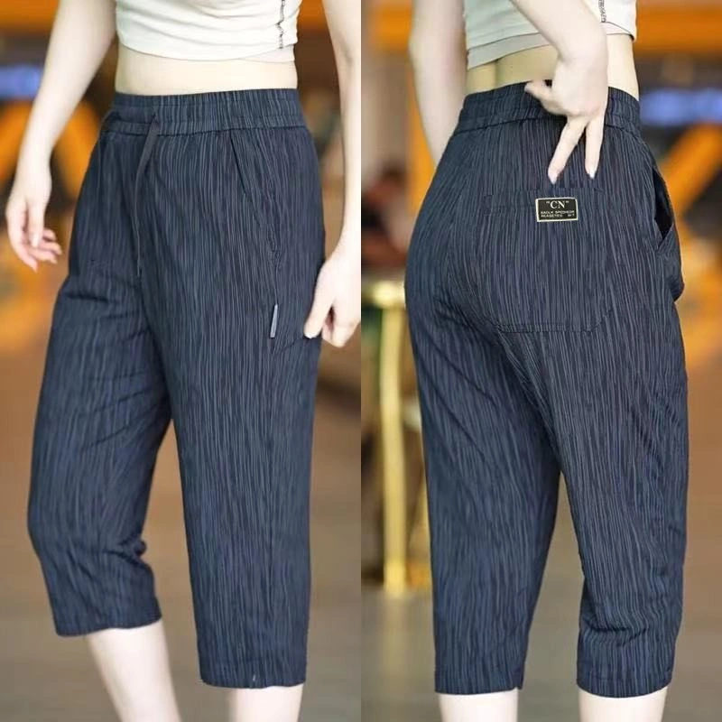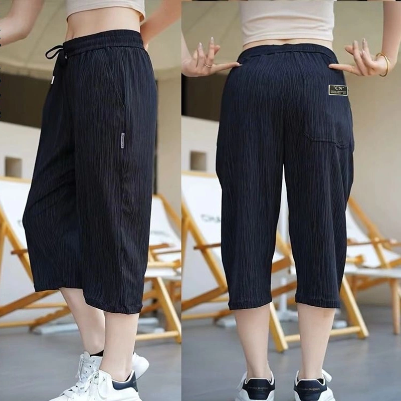 Ice Silk Pants Sports Cropped Pants Men's Thin Summer New Elastic Loose Men's Large Size Straight Casual Pants