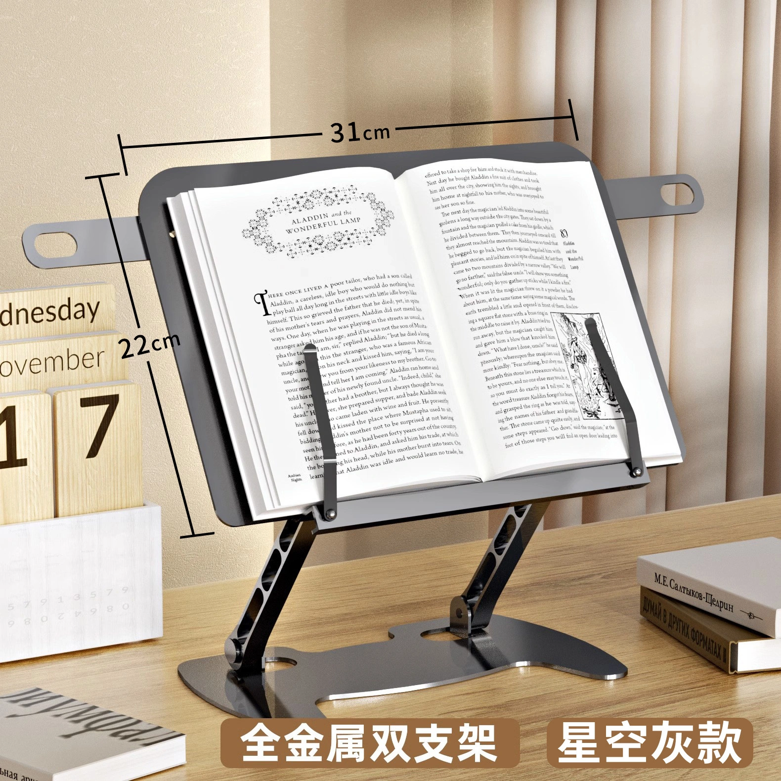 Adult All-Metal Reading Bookshelf, Reading Stand, Desktop Fixed Book Holder, Multifunctional Learning, Adjustable Height
