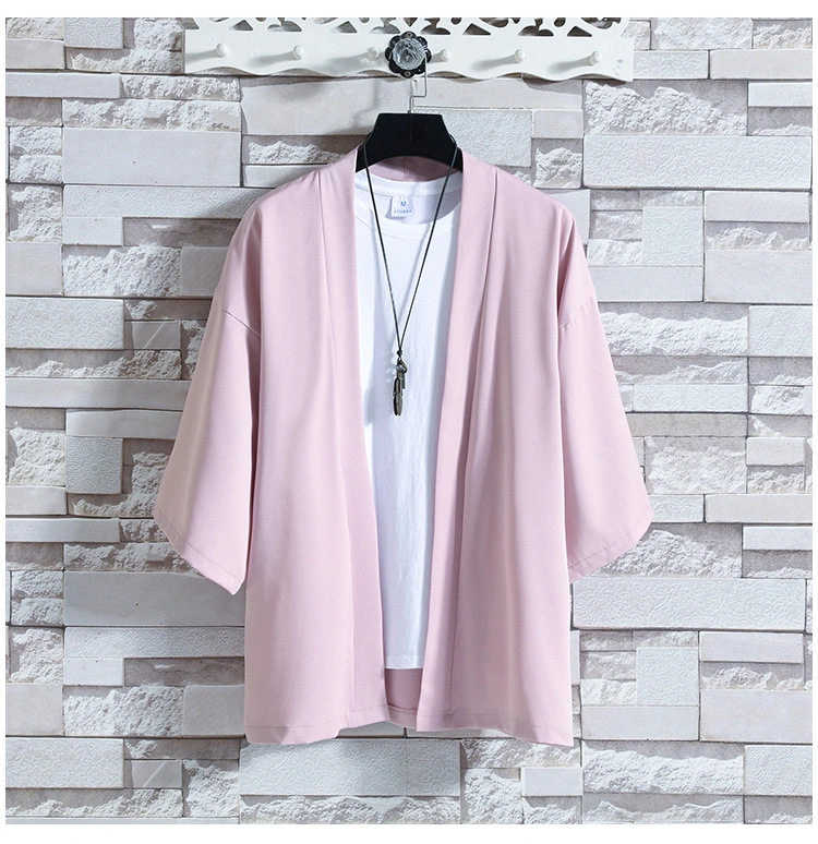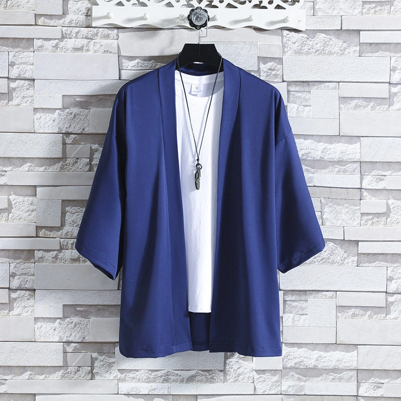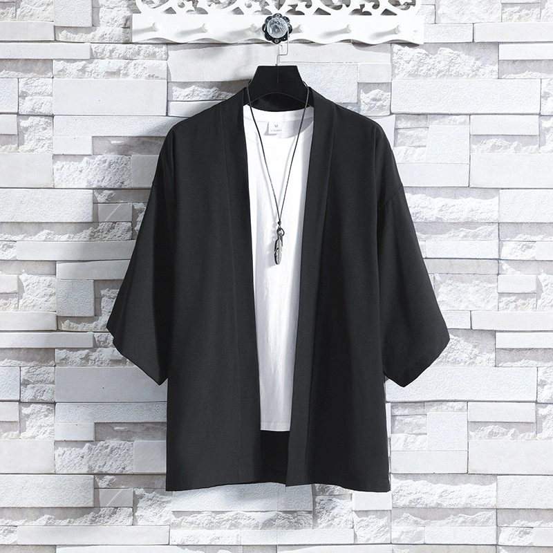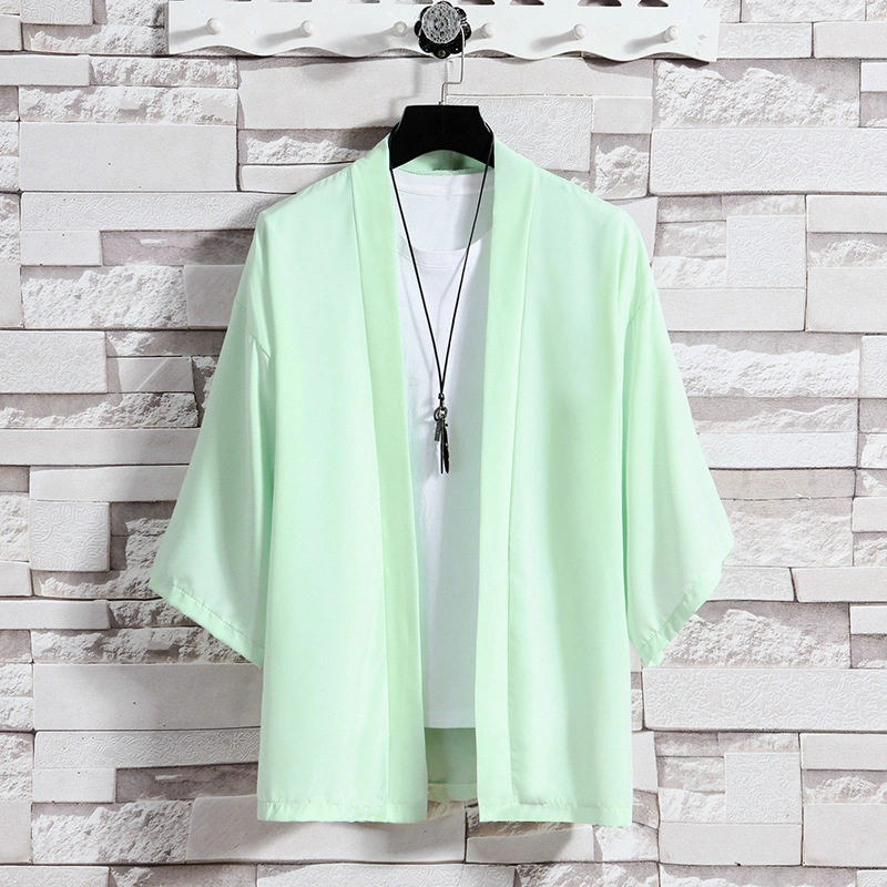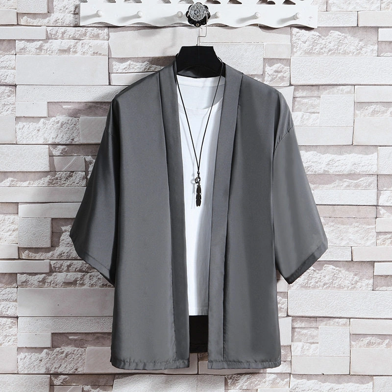 Summer Thin Short-Sleeved Cardigan Jacket Chinese Style Ice Silk Robe Hanfu Men's Casual Three-Quarter Sleeve Cardigan Jacket