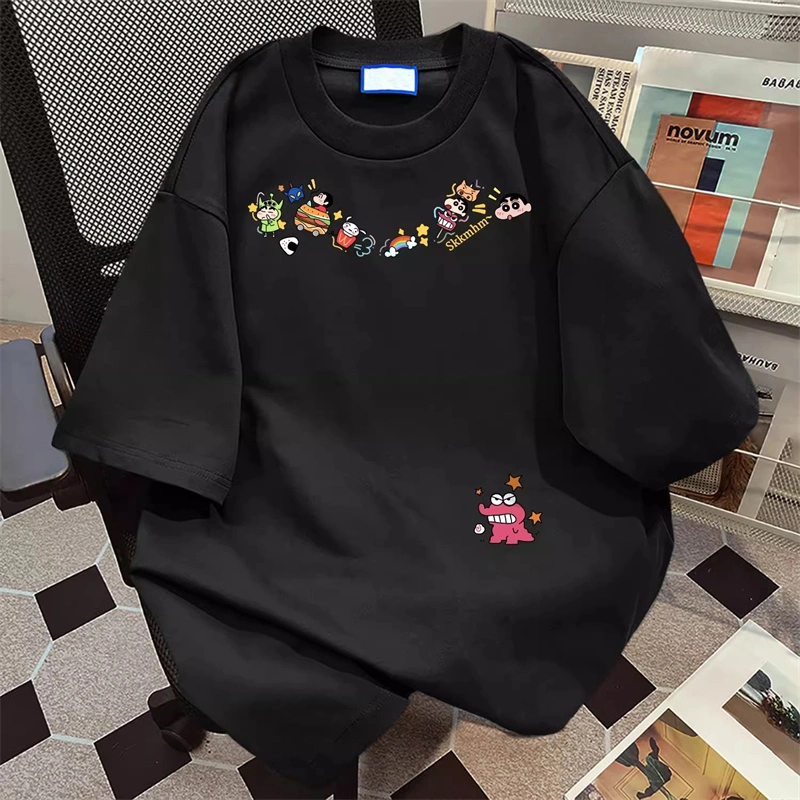 American Heavyweight Round Neck Short-Sleeved T-Shirt for Women 2025 Summer New Style Crayon Shin-Chan Loose Couple Half-Sleeved Top Trendy