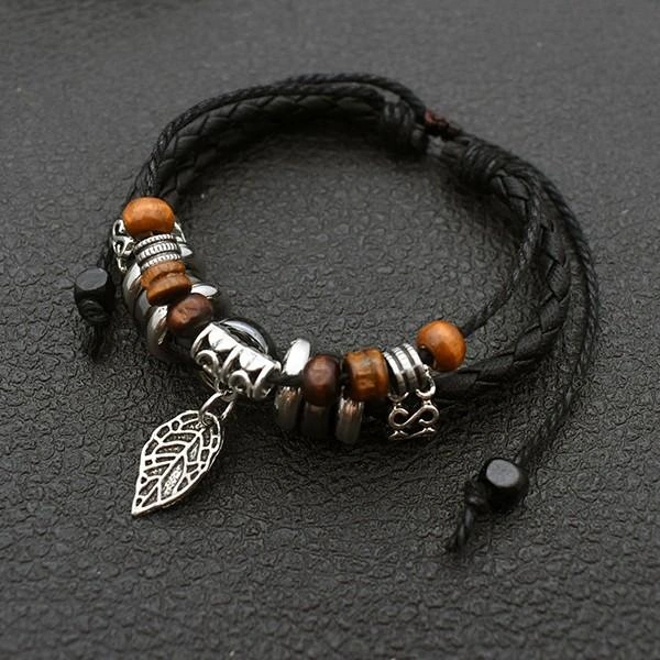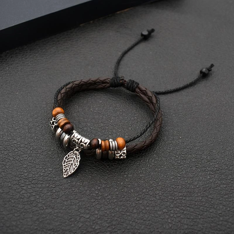Weaving Bracelet Cross-Border New Vintage Leather Hand-Woven Bracelet Leaf Ethnic Style Bracelet
