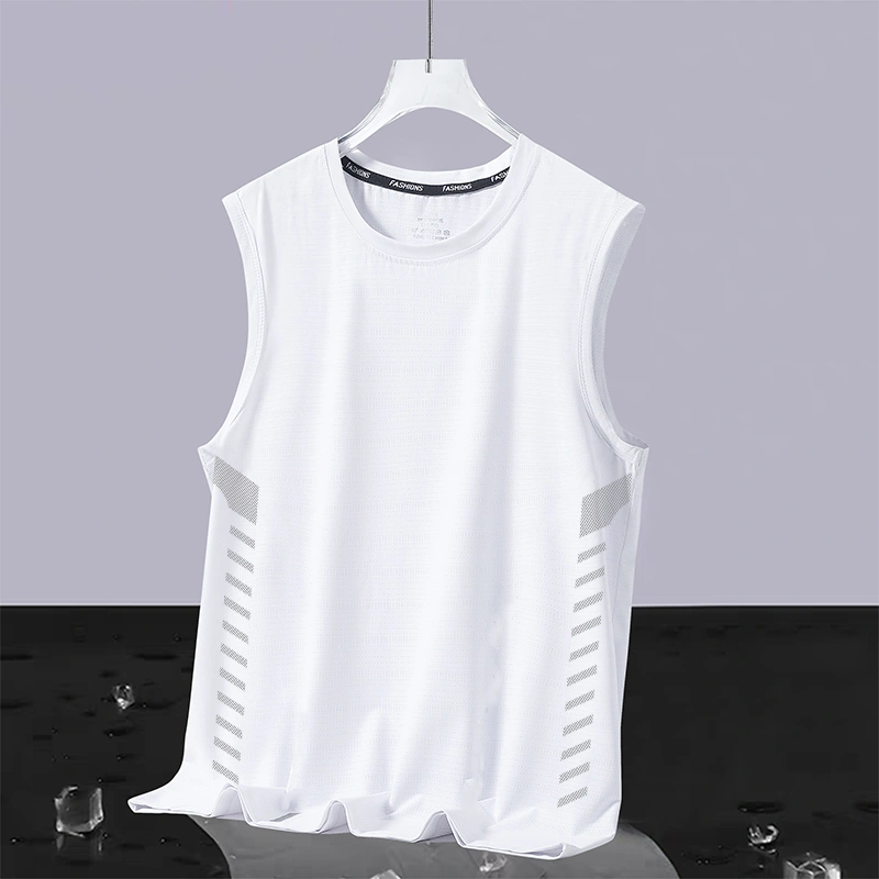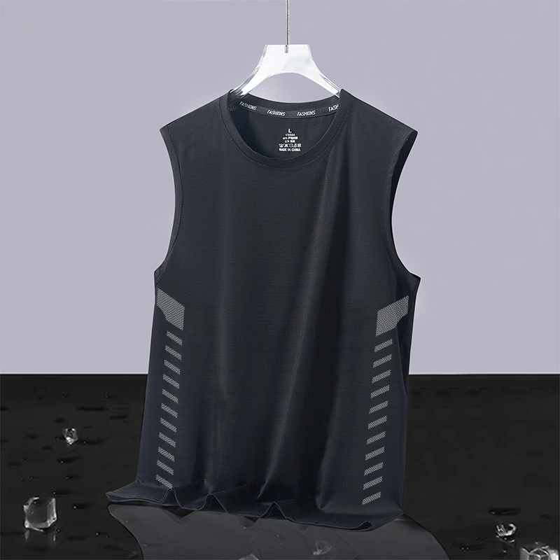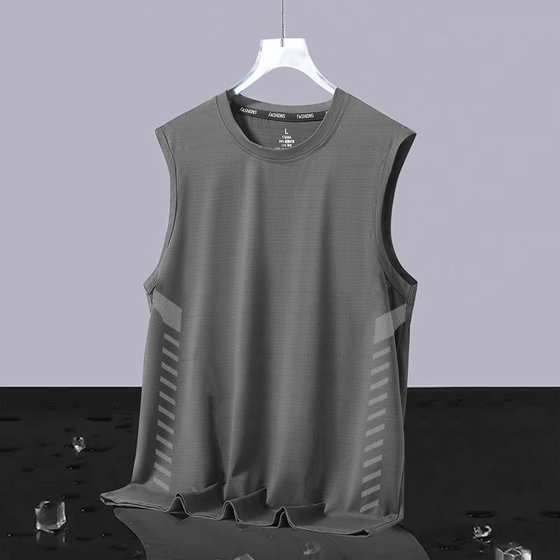 Men's Round Neck Sleeveless Vest, Ice Silk Summer Running Top, Ice-Feel Sports Vest, Quick-Drying Sleeveless T-Shirt