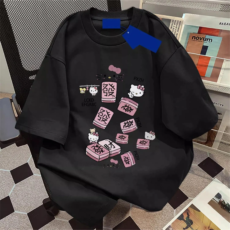 American Style 2025 Summer Hello Kitty Letter Print Women's Short-Sleeved T-Shirt Hip-Hop Loose Couple Inner Wear Top