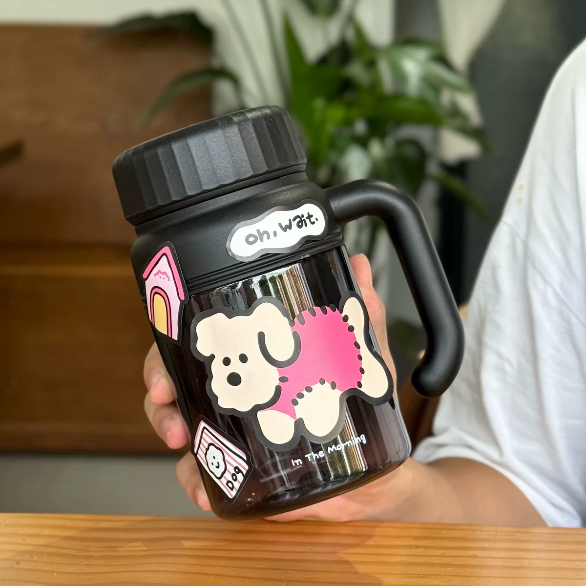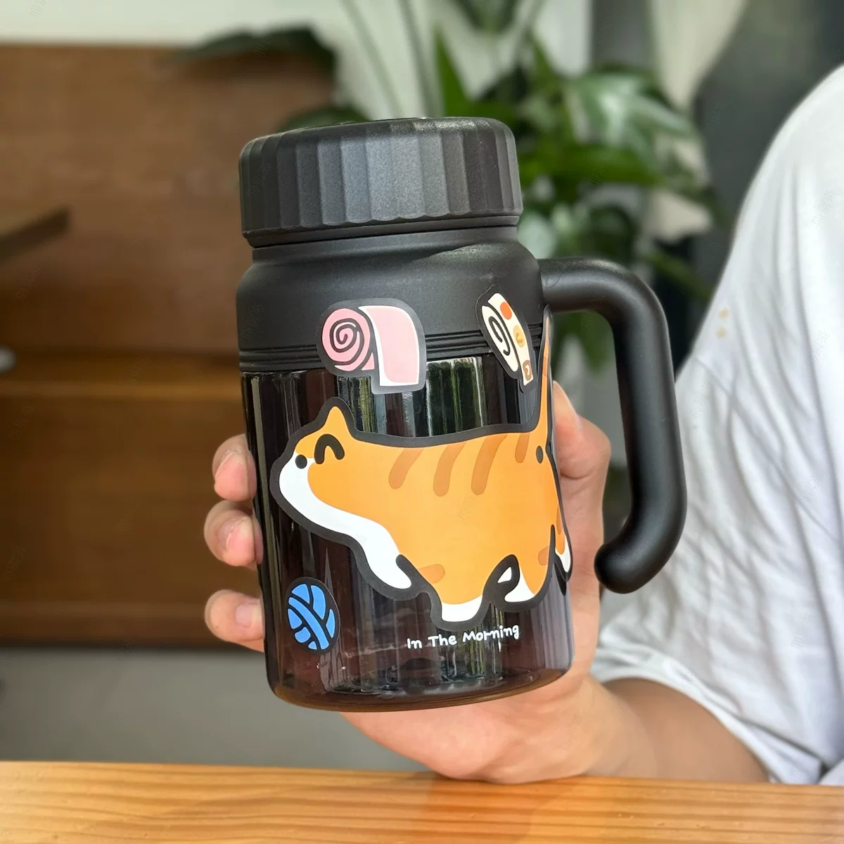 1000ml Plastic Cup with Handle, Portable Tea and Water Separation Cup, Large Capacity Office Water Cup, Student Home Use