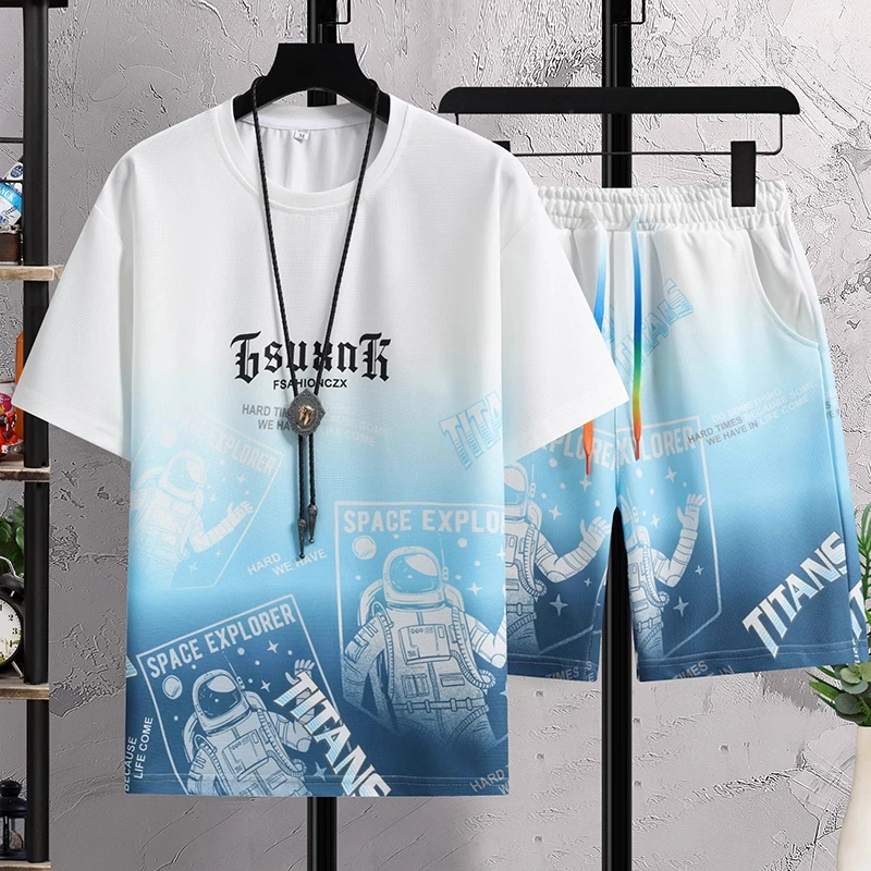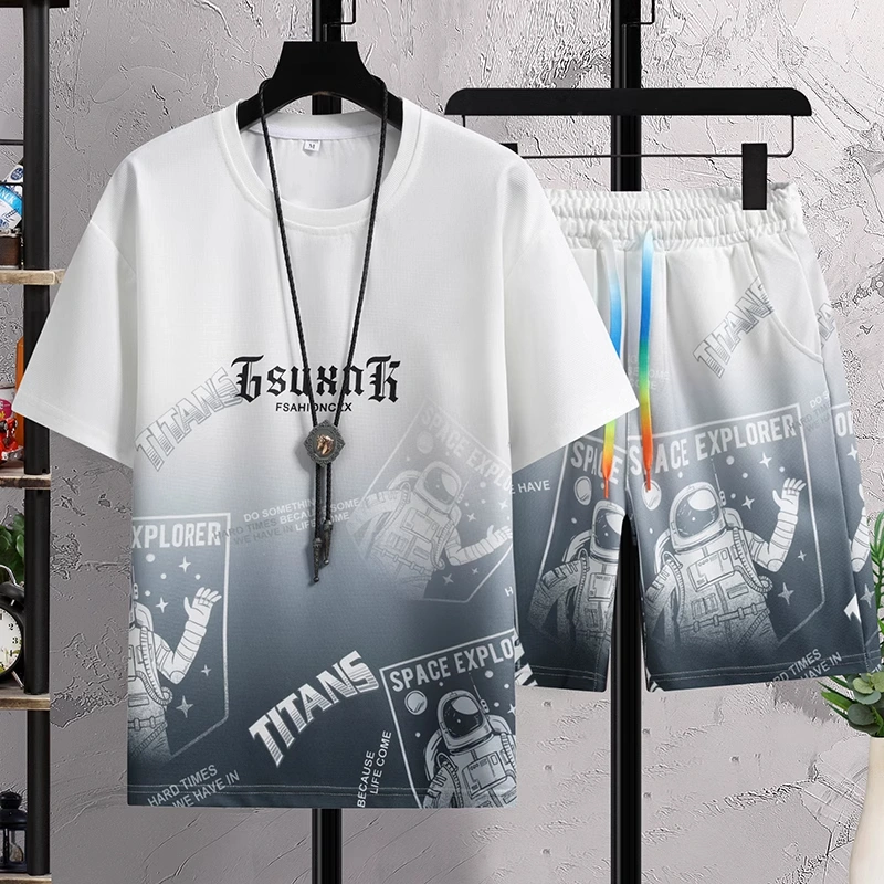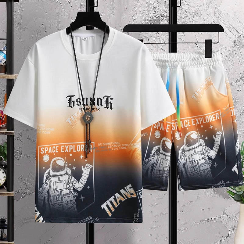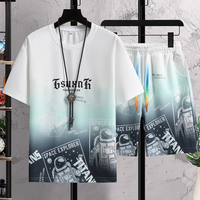 Fashionable New Boys' Ice Silk T-Shirt, Men's Youth Shorts, Casual Sports Suit, Handsome Two-Piece Top