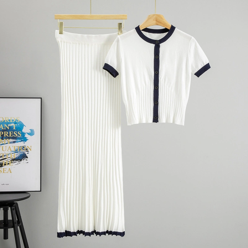 Summer New Style Chanel-Inspired Fashion Solid Color Sports Suit Skirt for Women 2025 New Top Two-Piece Set