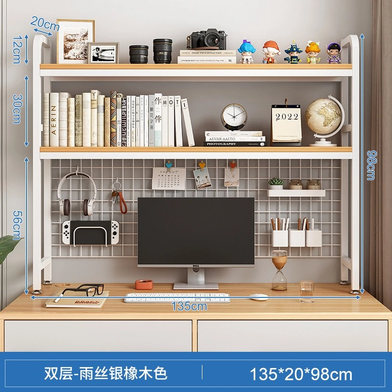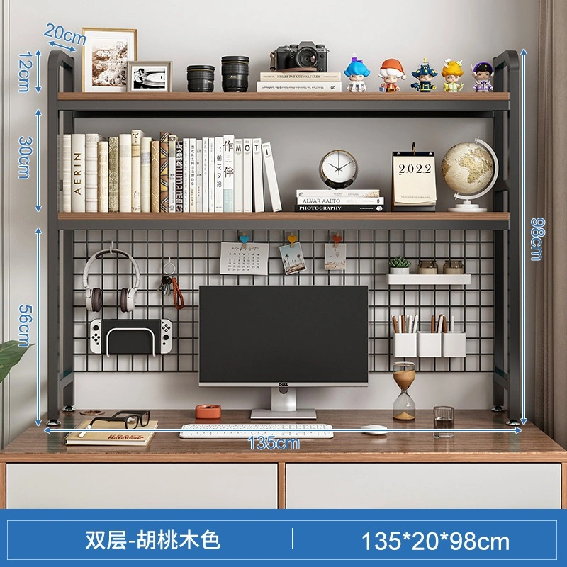Desktop Bookshelf Vertical Multi-layer Storage Rack for Computer Desk Iron Cave Board with Grid Layered Desk Storage Rack