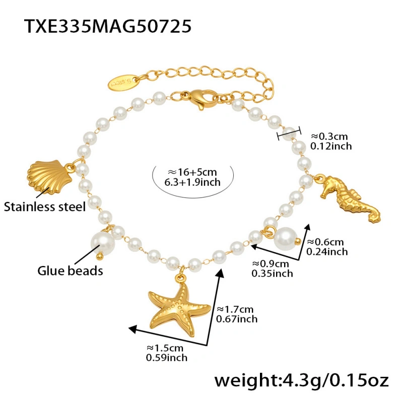 Fashion cross-border titanium steel rubber beads handmade white beads marine shell bracelet necklace plated 18K gold fashion Easiest for match jewelry