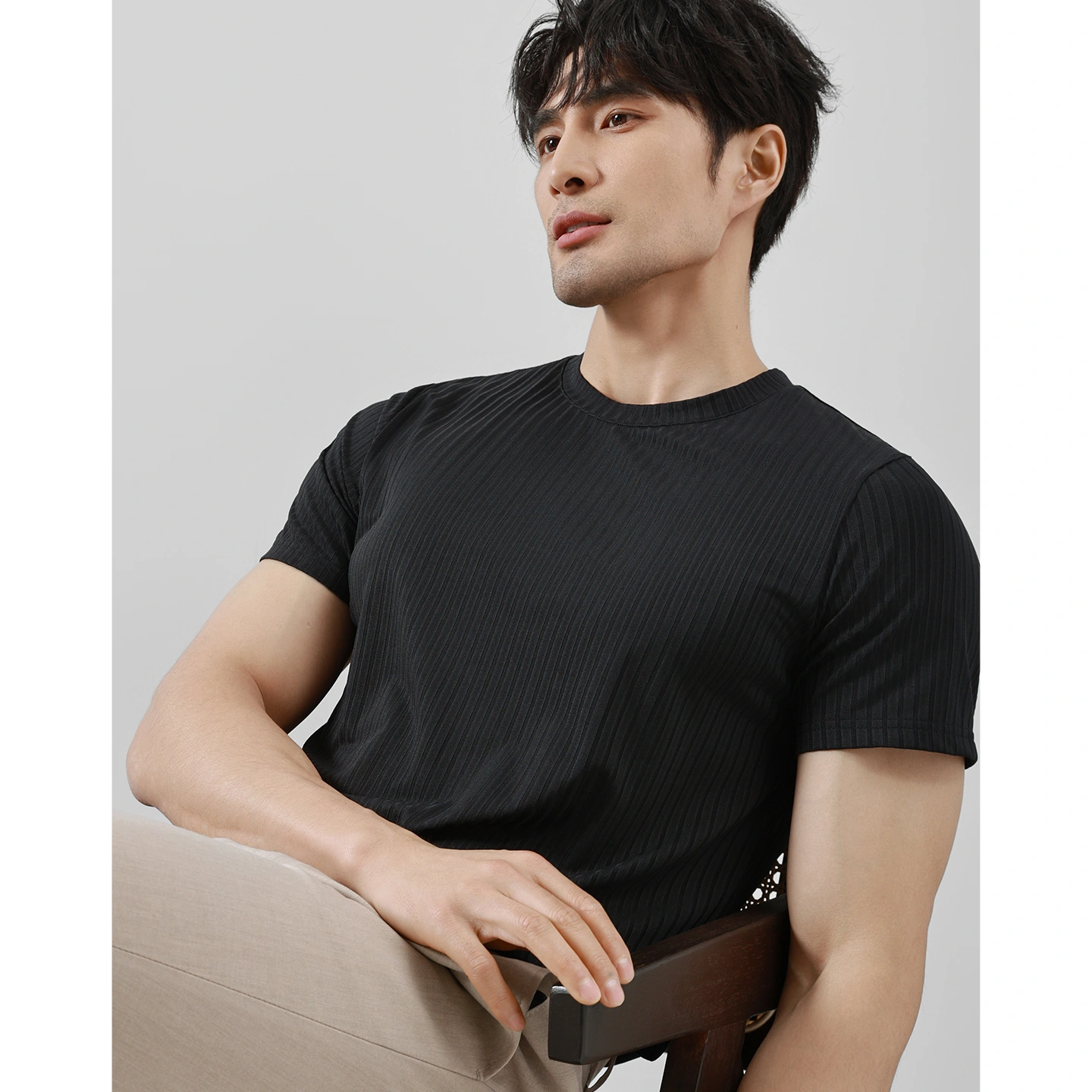 Ookaak Ice Silk Seamless Drapey Stretch T-Shirt for Men, Summer Striped Crew Neck Breathable Cool Solid Color Fitness Short Sleeve