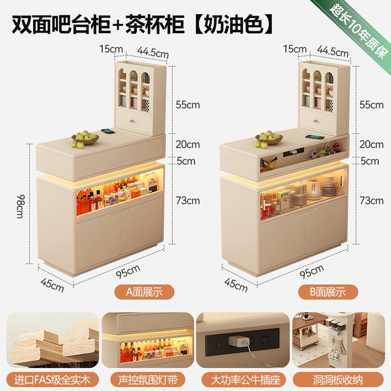 Cream Style Living Room Small Wine Cabinet Bar Counter Integrated Table Classy Solid Wood Corner Sideboard Home Small Bar Counter Side Cabinet