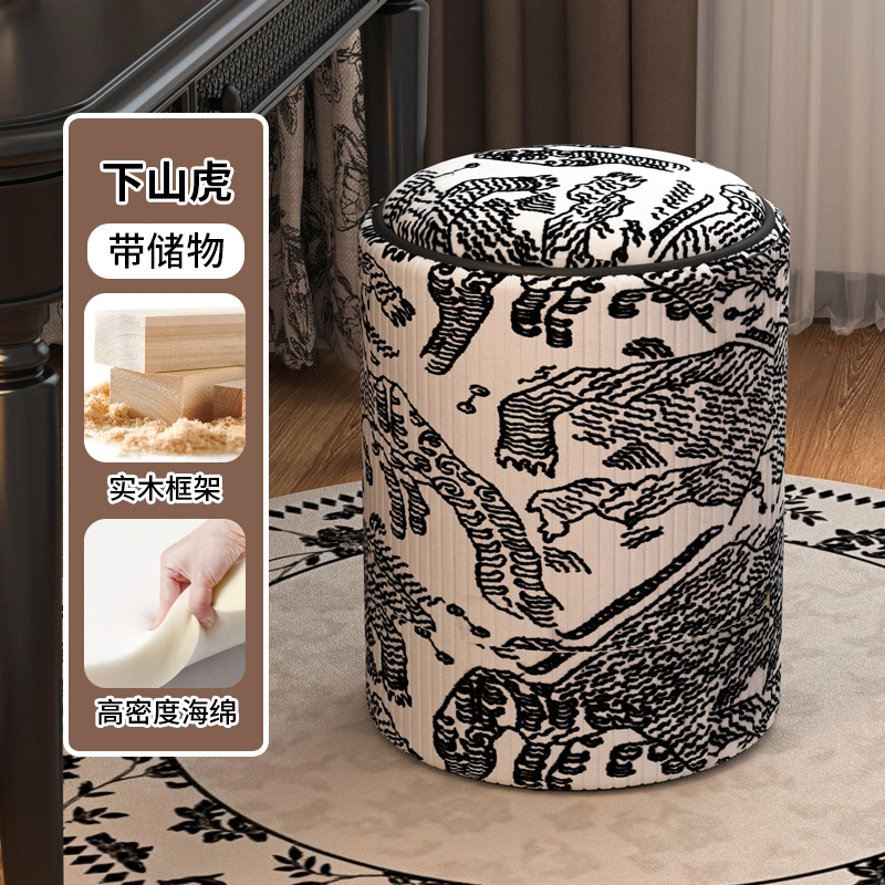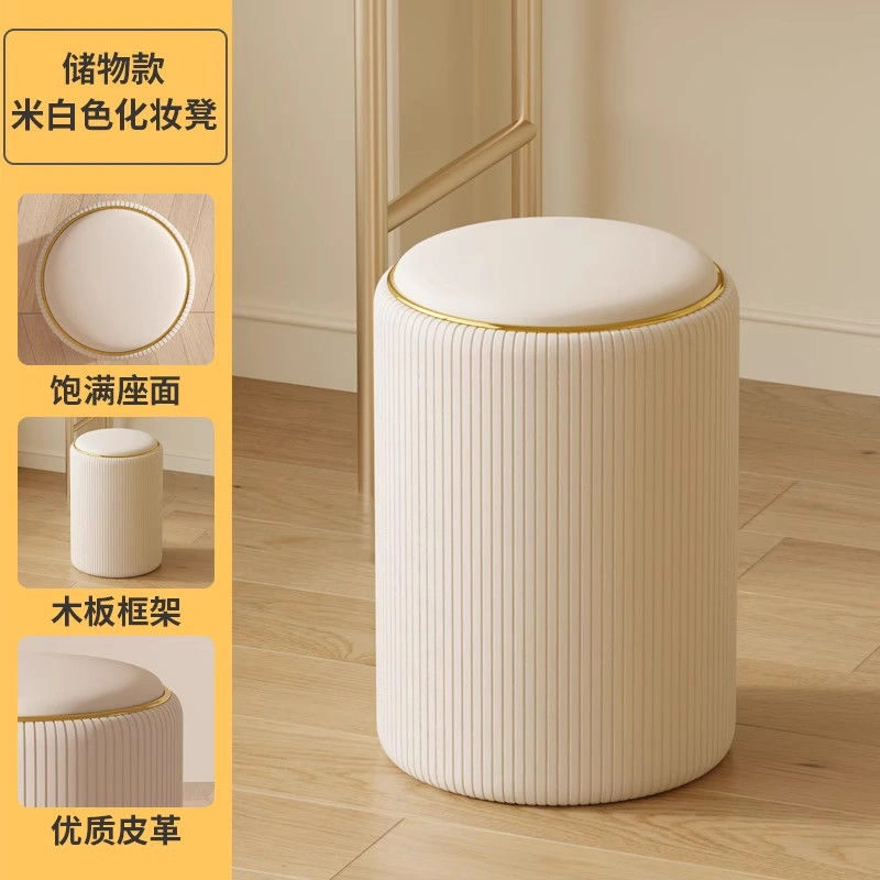Solid Wood Stool for Home Use, Round Stool for Dressing Table, Living Room Makeup Chair, Comfortable for Long Sitting, Small Chair, 2025 New Model, Storage Bench