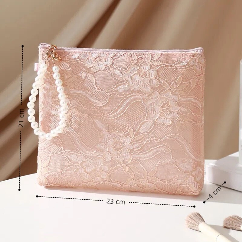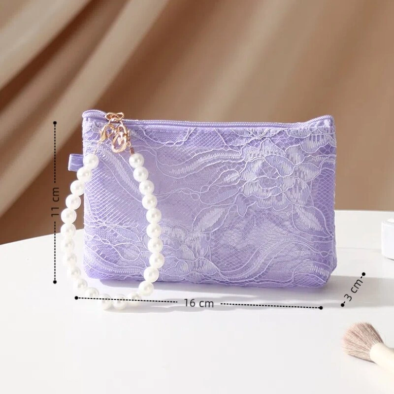 New Chinese Style Lace Cosmetic Bag, Pearl Hand-Held Zipper Wallet, Mobile Phone Bag, Portable Travel Toiletry Bag, Storage Bag