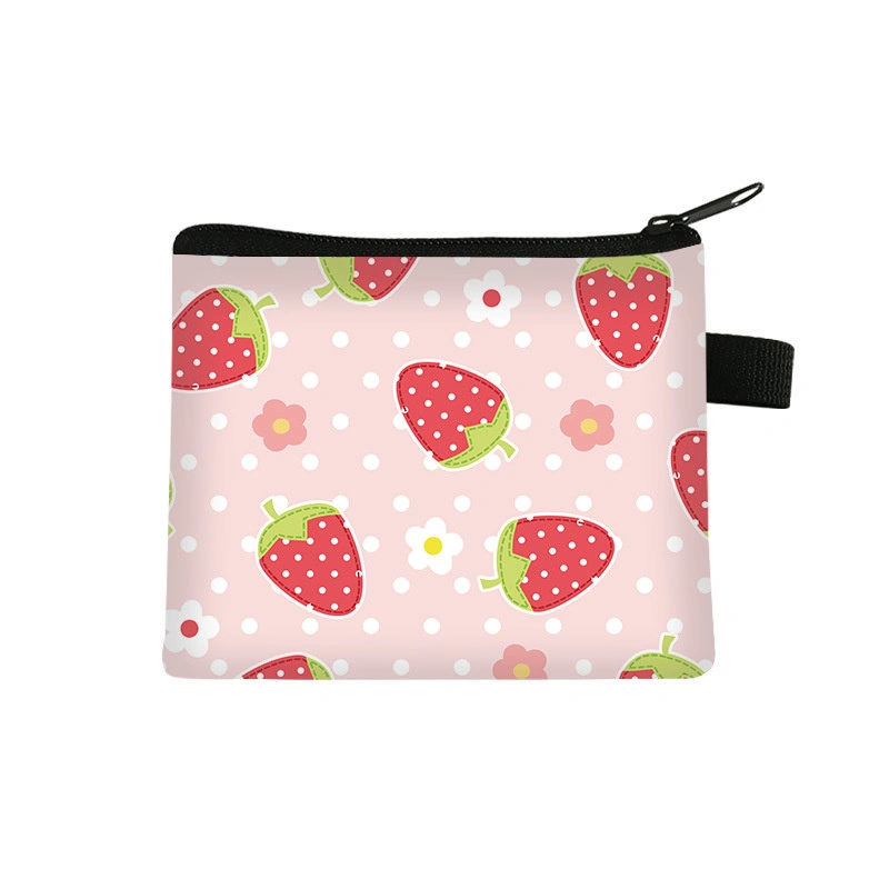Fruit Pattern Super Popular Storage Bag Kidsren's Strawberry Pattern Coin Purse Card Holder Simple and Cute Elementary School Student Card Holder Cute