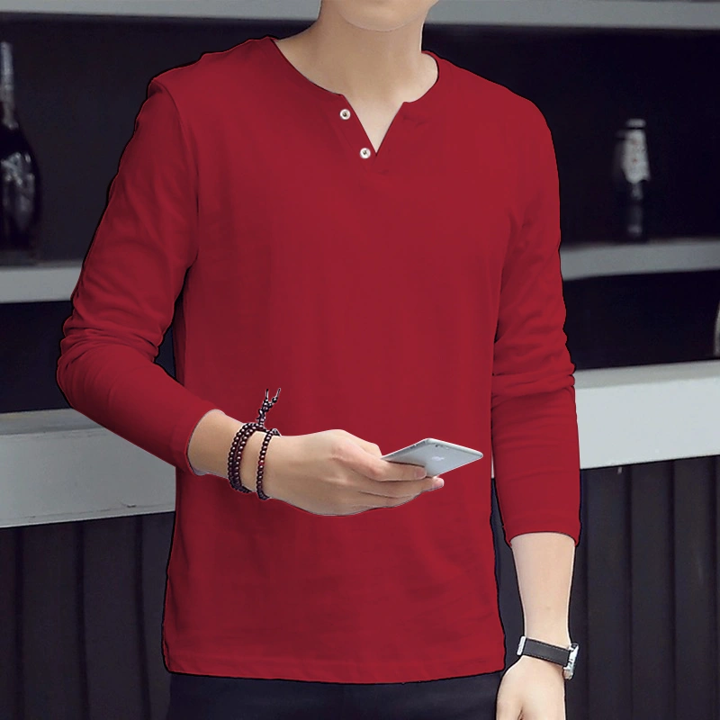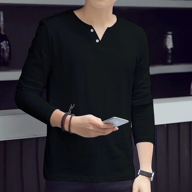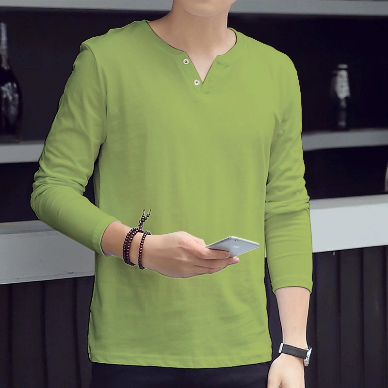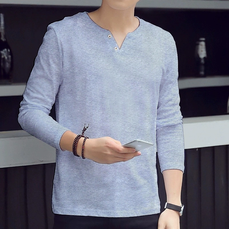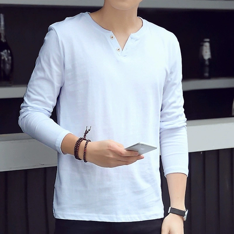 Cheap Autumn and Winter Thin Long-Sleeved T-Shirt for Men, Loose and Versatile, Solid Color Basic Style, Simple Casual V-Neck Top