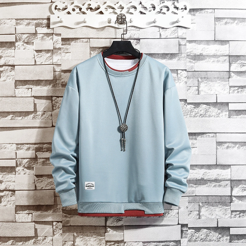Amazon Men's Sweatshirt 2025 Spring and Autumn Men's Sweatshirt Street Fashion Double-Layer Round Neck Stylish Fake Two-Piece Long Sleeve
