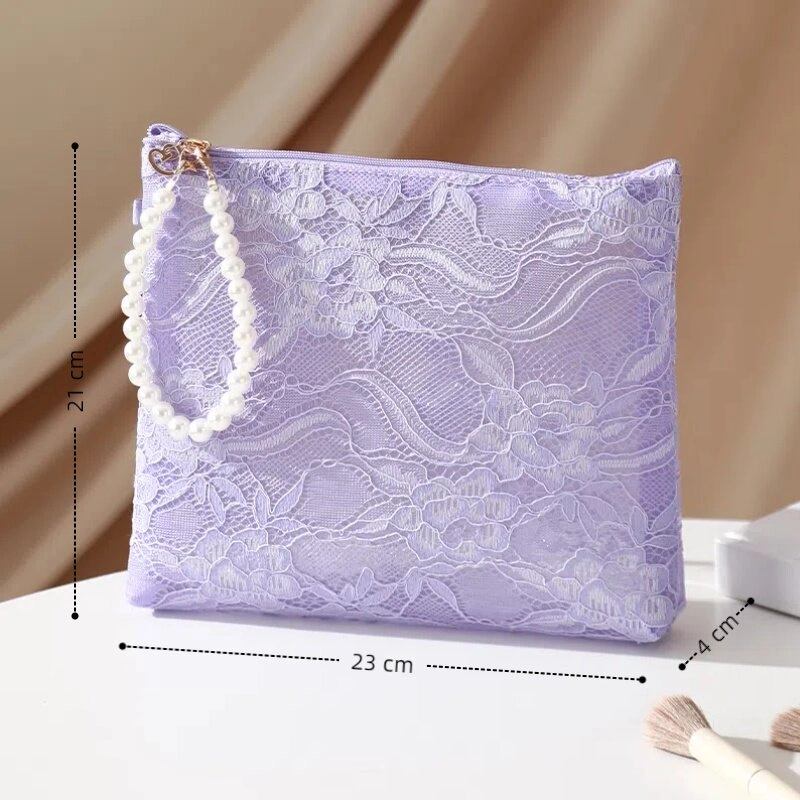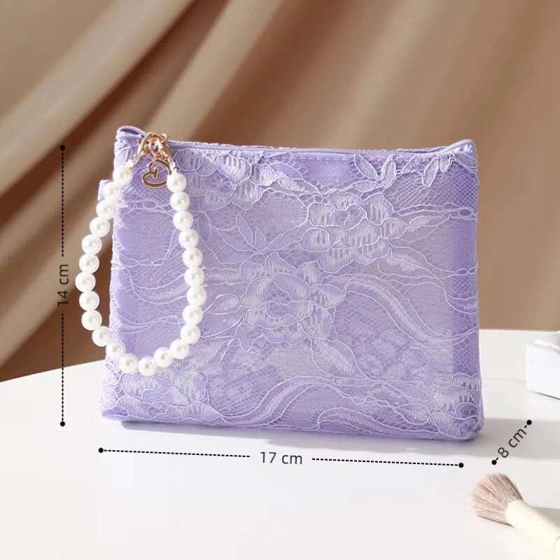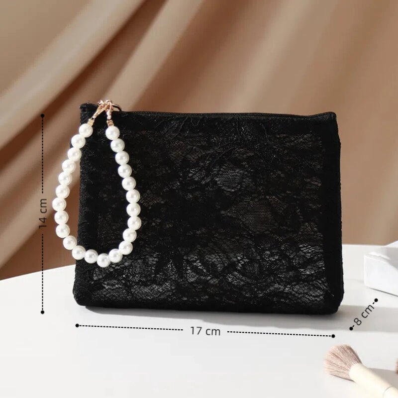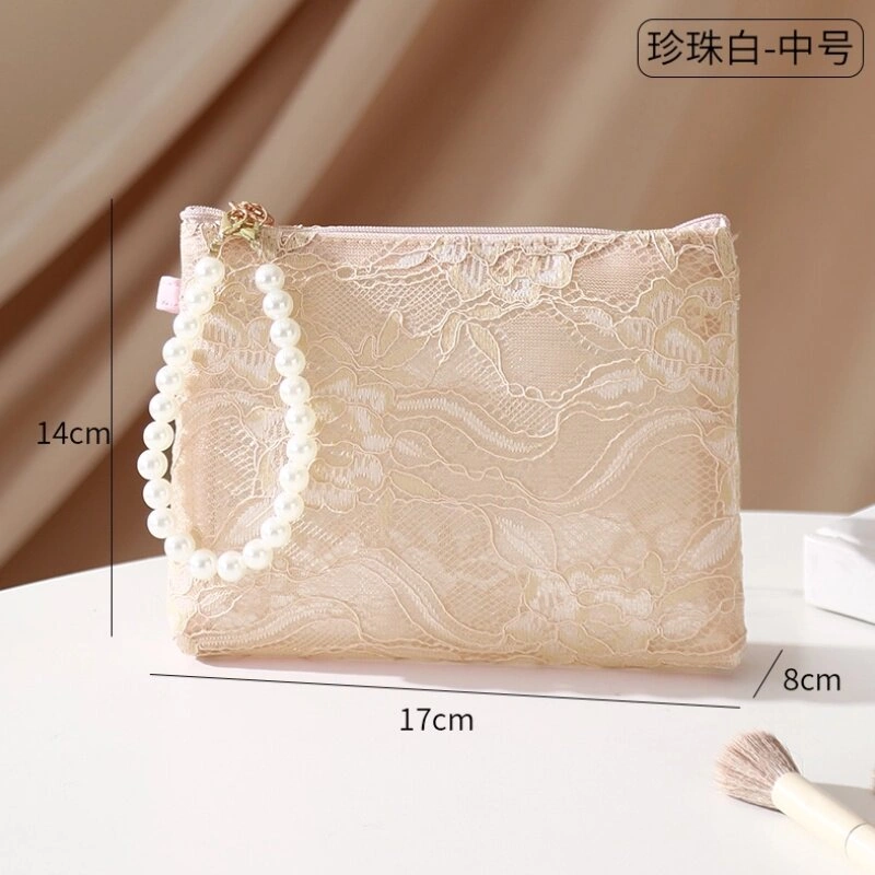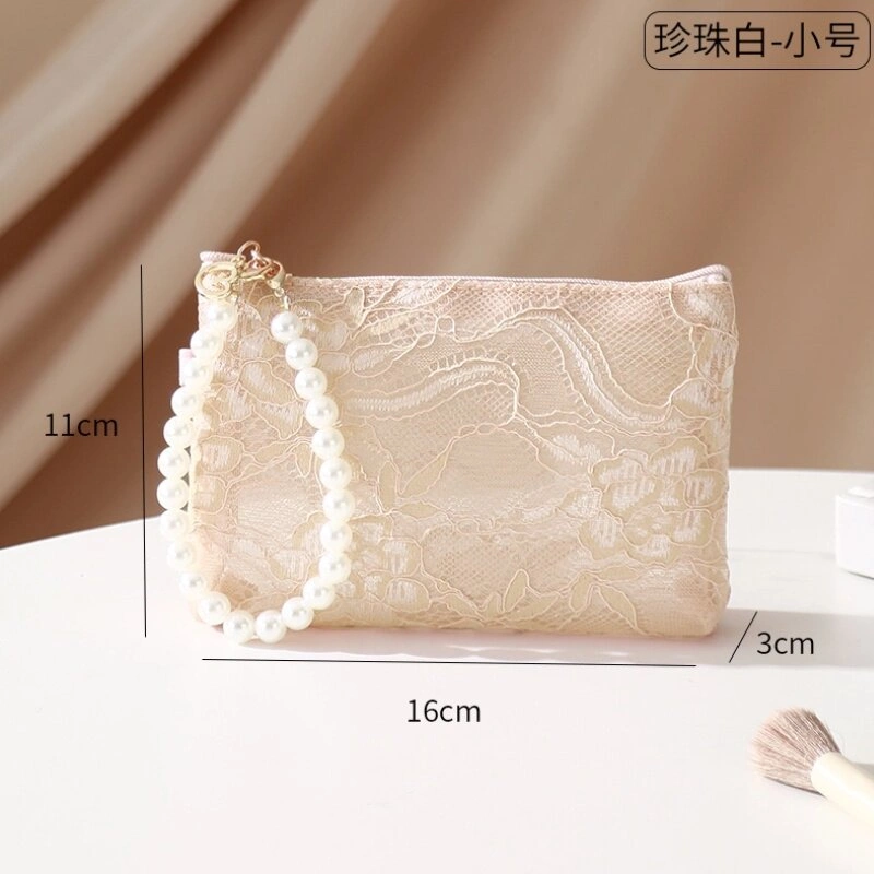 Pearl Handle Cosmetic Bag, Chinese Style Lace Lipstick Bag, High-Value Phone Bag, Short Trip Cosmetic Storage Bag
