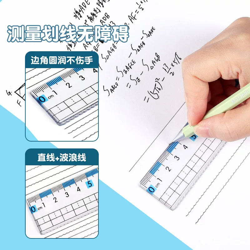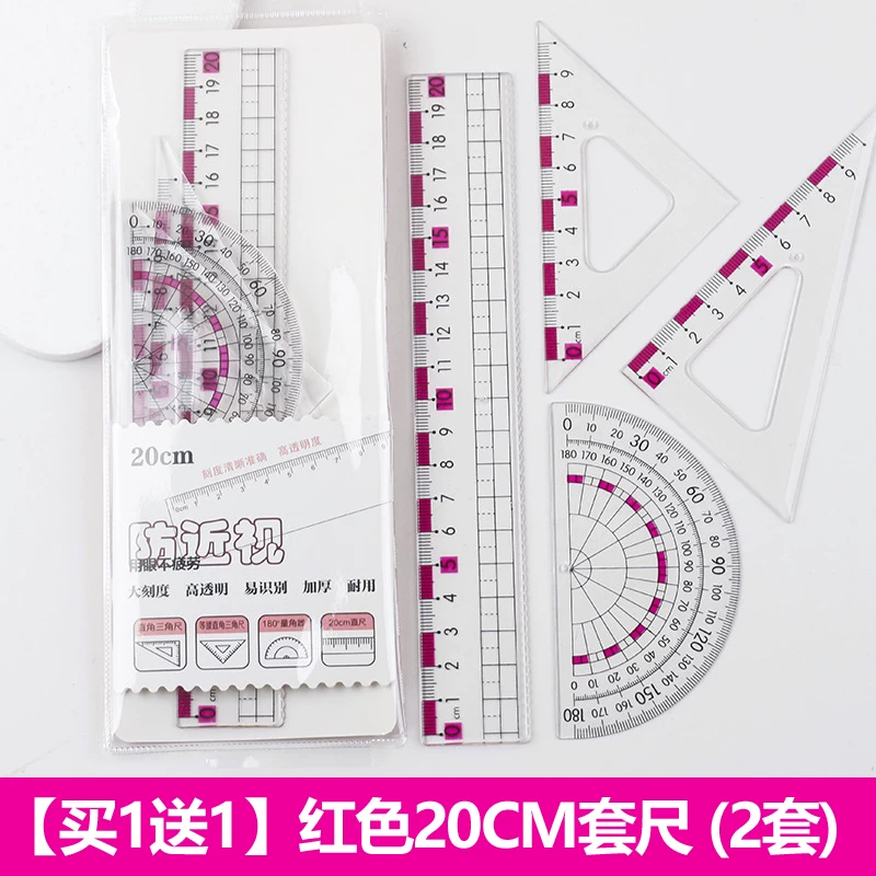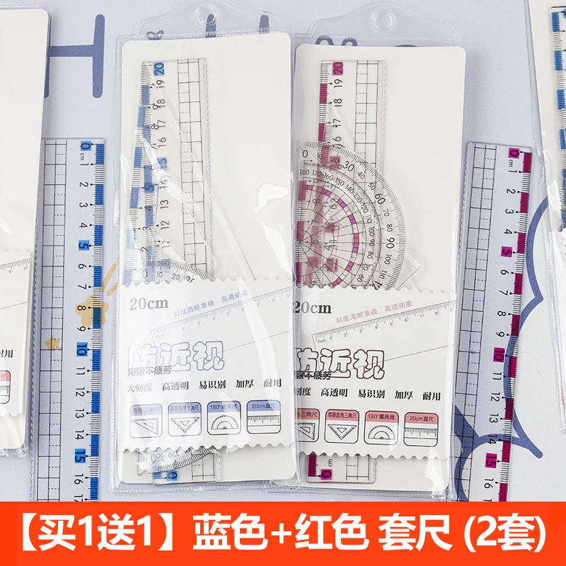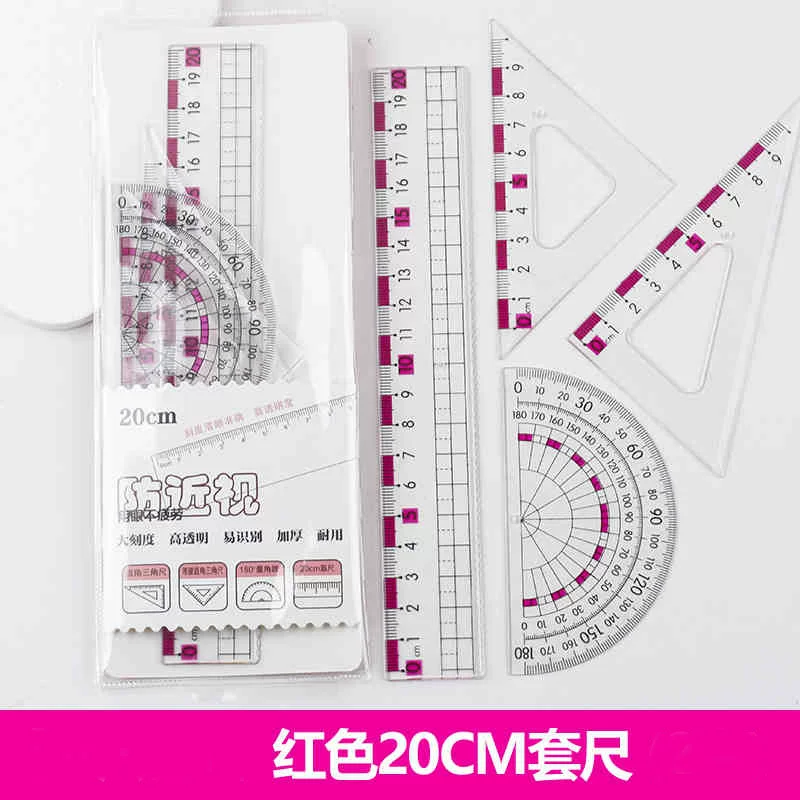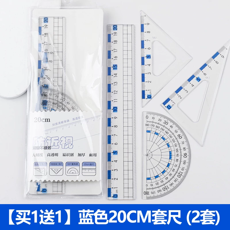 Anti-Myopia Ruler Set with Wavy Lines, 20cm Straight Ruler, Special for Primary School Students, First Grade Triangle Ruler, Transparent and Multifunctional