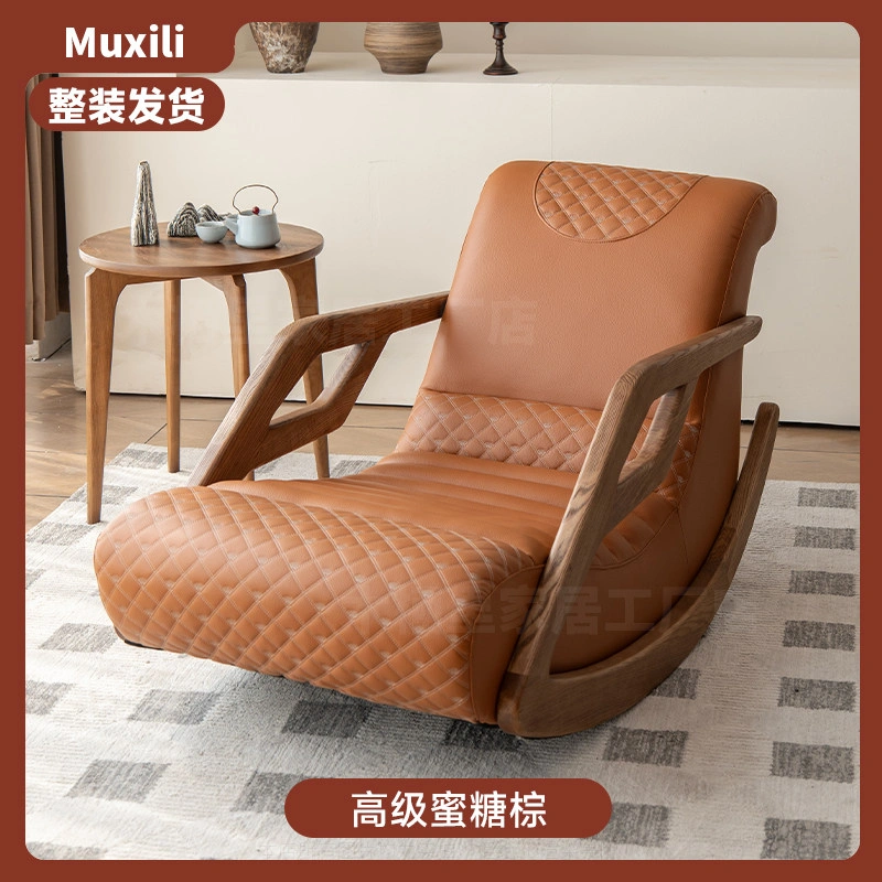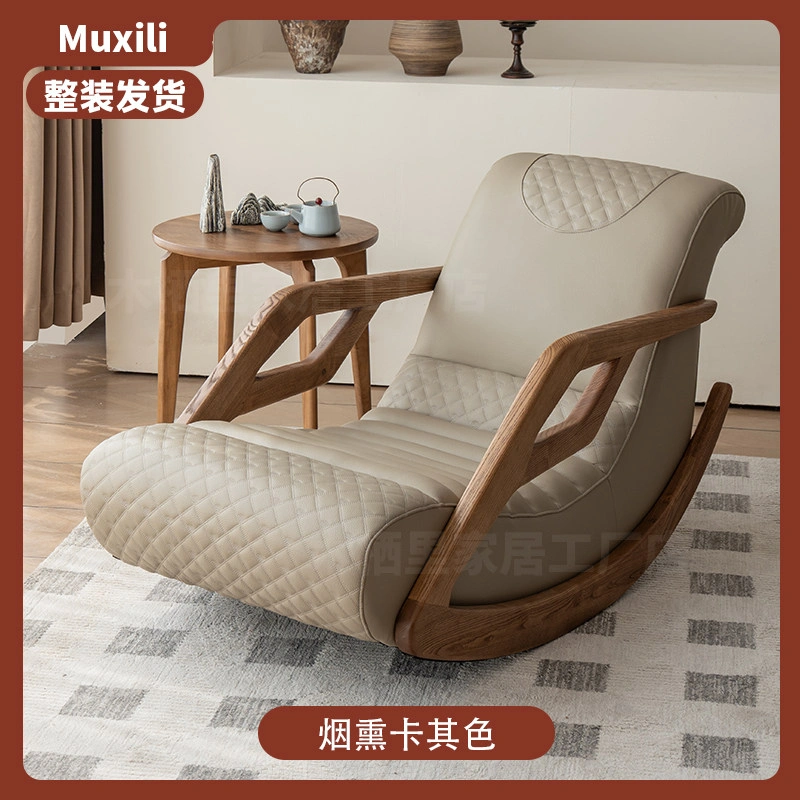 High-End Villa Rocking Chair Lazy Rocking Sofa Chair Large Flat Balcony 2025 New Designer Solid Wood Recliner