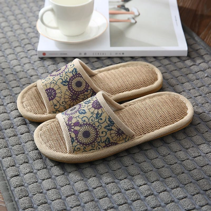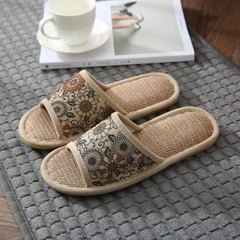 Linen Slippers Women's 2025 New arrival Summer Indoor Home For Home All Year Round Men's Autumn Pastoral Home Floor Slippers Men
