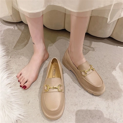Lefu Women's Shoes Spring & Fall British Flats Popular Slip-on Rain Shoes Waterproof Low Ankle Retro Soft Bottom Water Boots Western-style