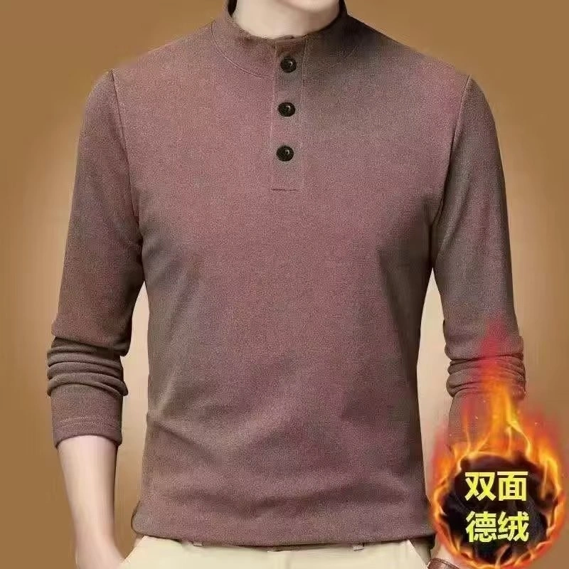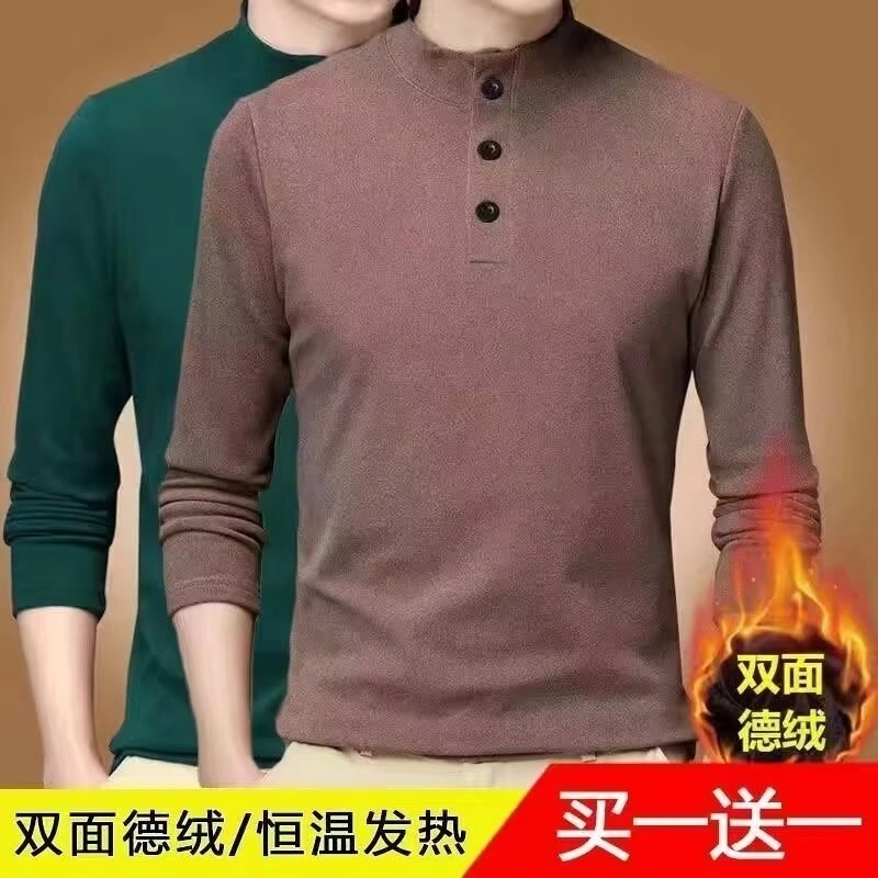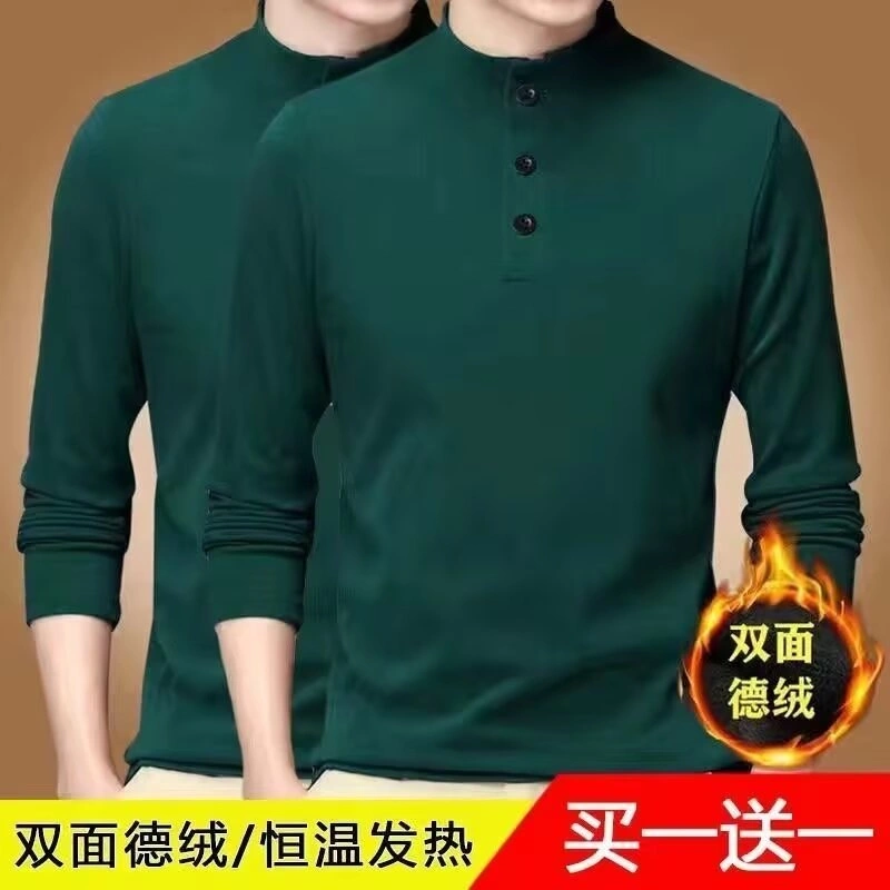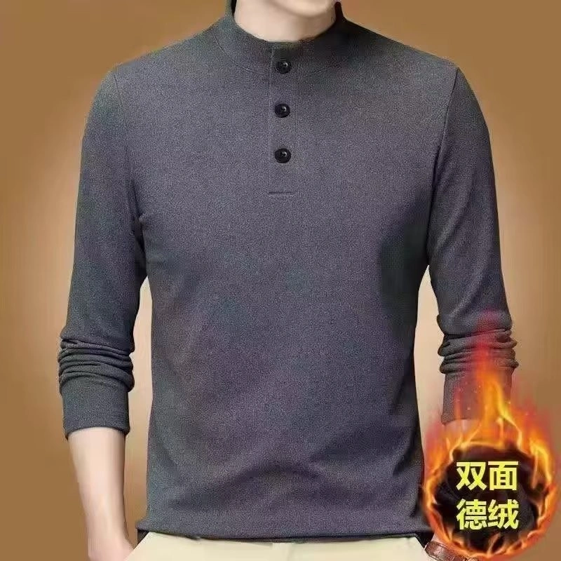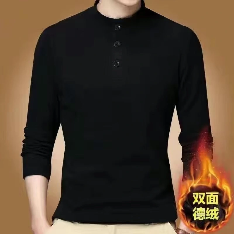 Double-Sided Thermal Base Layer Shirt for Men, Half-High Collar, Solid Color Top, Dad's Warm, Loose, Wrinkle-Free, New Long-Sleeve T-Shirt for Winter