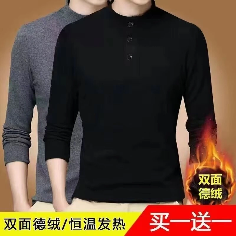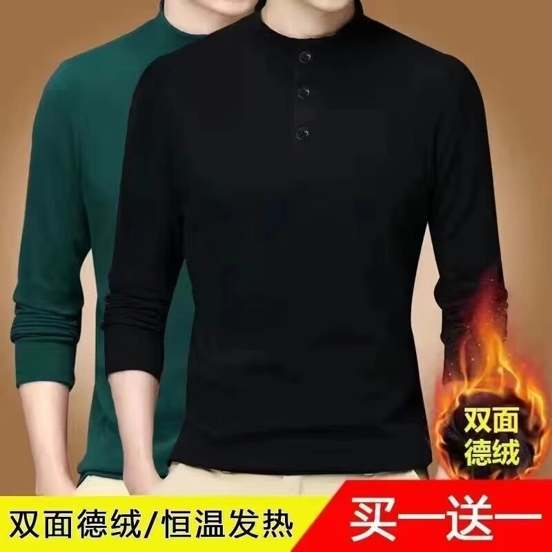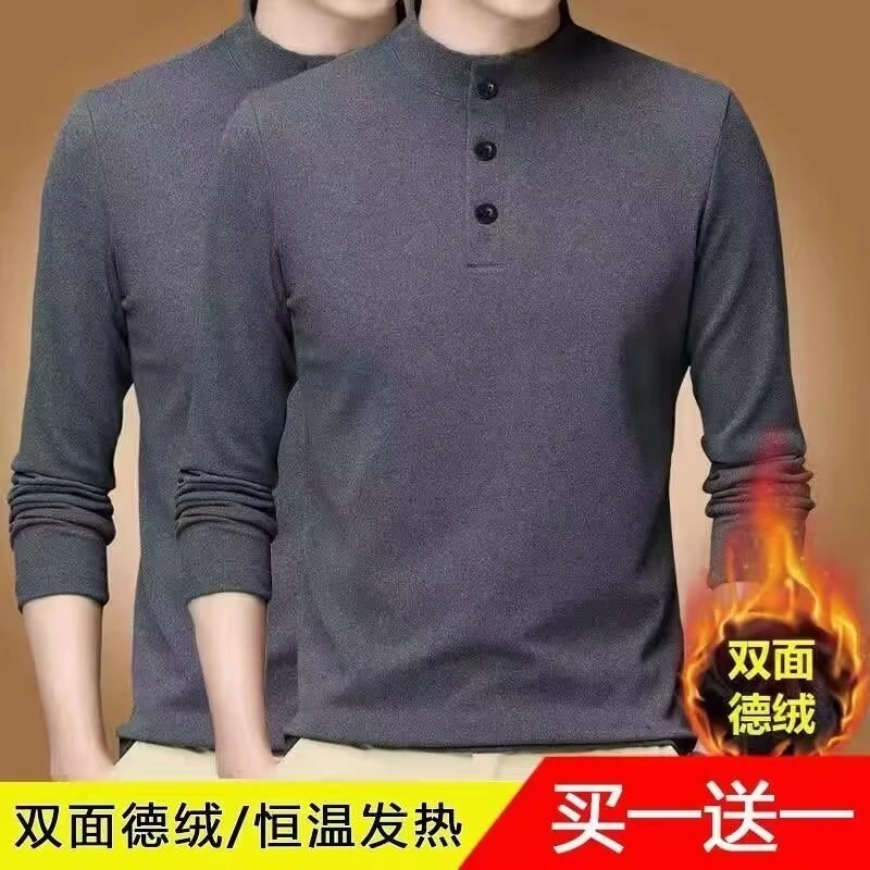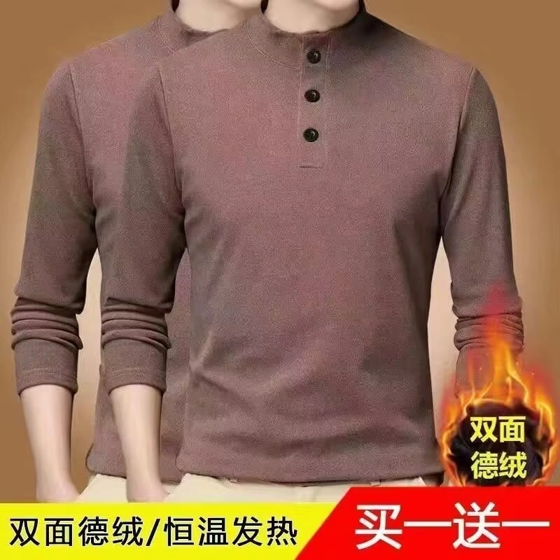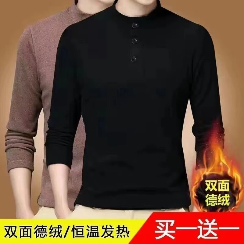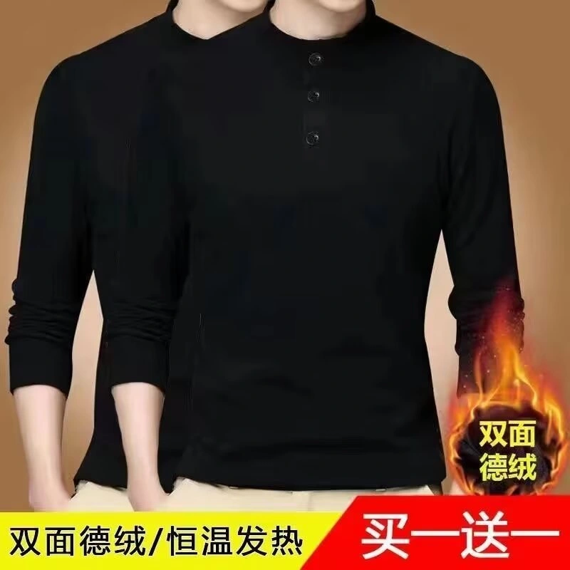 Double-Sided Thermal Base Layer Shirt for Men, Half-High Collar, Solid Color Top, Dad's Warm, Loose, Wrinkle-Free, New Long-Sleeve T-Shirt for Winter