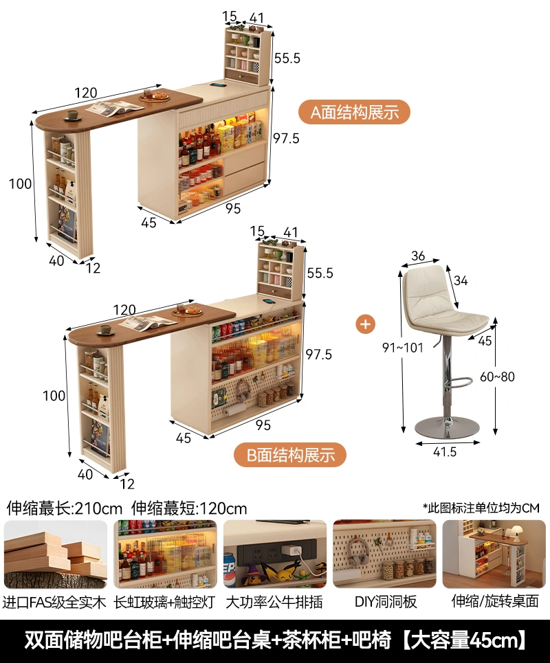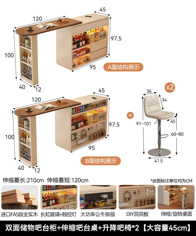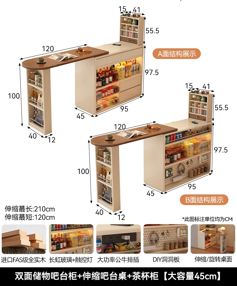 Casual Balcony Wall Coffee Bar Table For Home Corner Cream Style Sideboard Dining Table Integrated Cabinet Window Partition