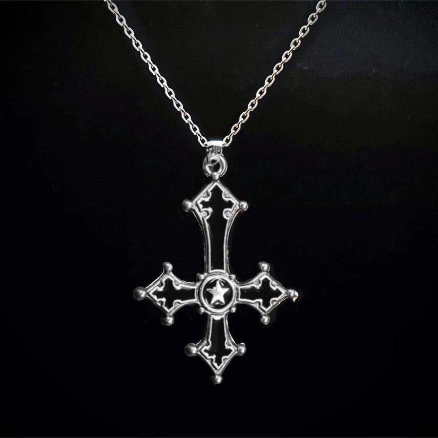 Cross Pendant Necklace Cross-Border New Style Blood-Red Gothic Punk Inverted Cross Pendant Necklace