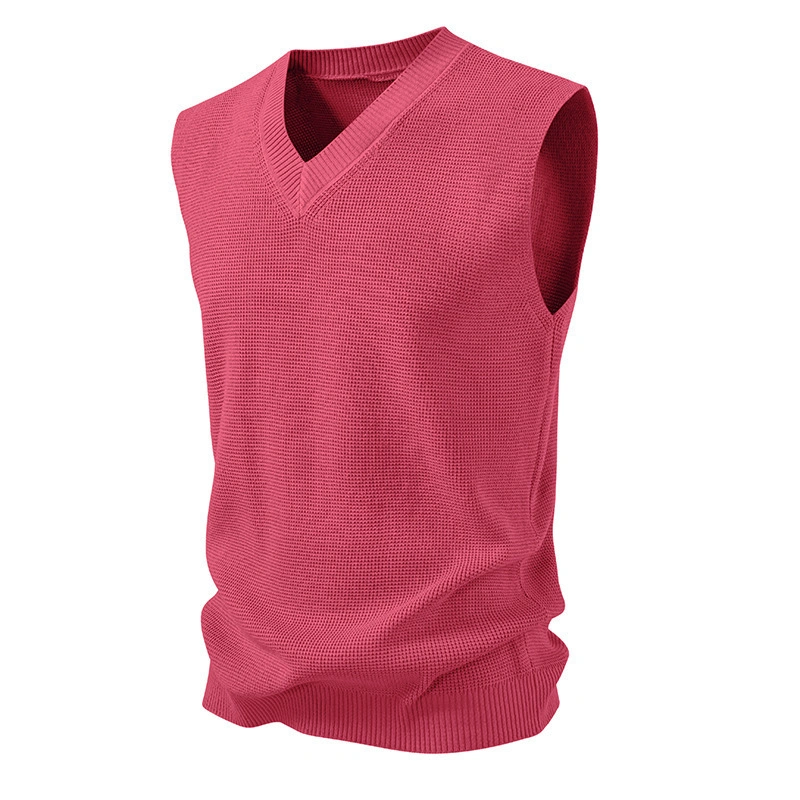 Cross-Border Men's Casual V-Neck Sweater Vest European and American Fashion Solid Color Pullover Sleeveless Knitted Vest Vest